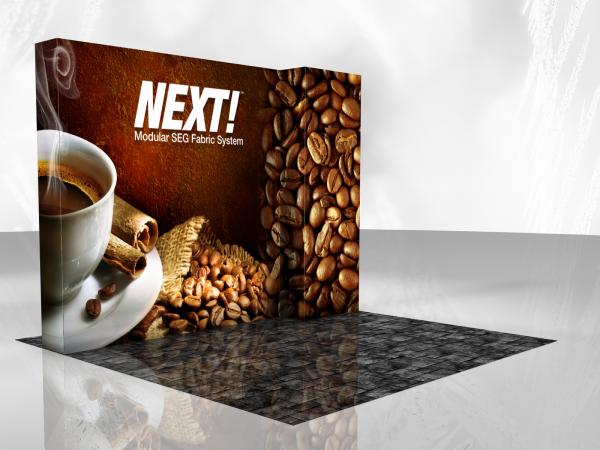 The NEXT Modular SEG Fabric System is truly the best of both worlds. Combine the upmarket hard panel looks of custom SEG Extrusion Systems with the lightweight, no tools, ultra portable world of pop-ups.