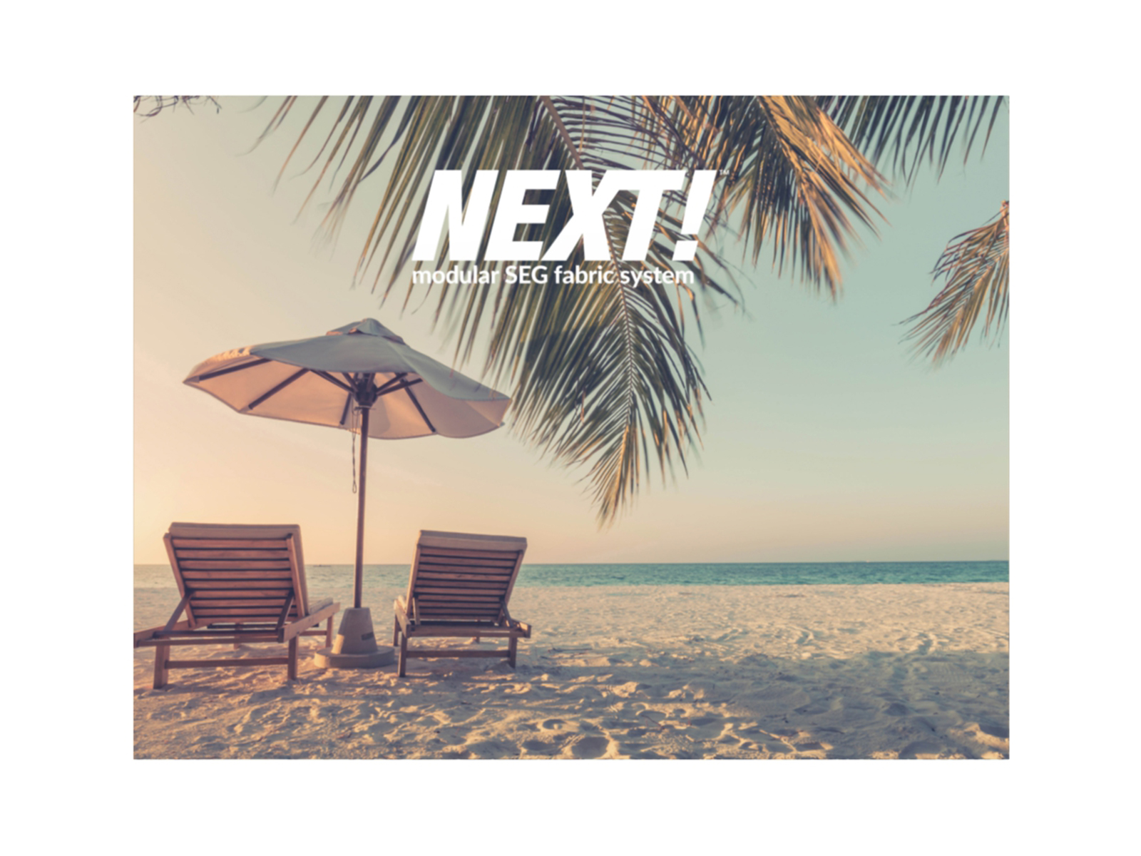 Don’t settle for lower quality 4 and 6 color SEG graphics – With NEXT! Modular SEG Fabric Systems, your graphics will be printed 4K Grand Format, Sewn and Finished to perfection by professionals. Our special fabric is FR coated and when installed the taut graphics have just enough stretch to pull out typical fold lines.