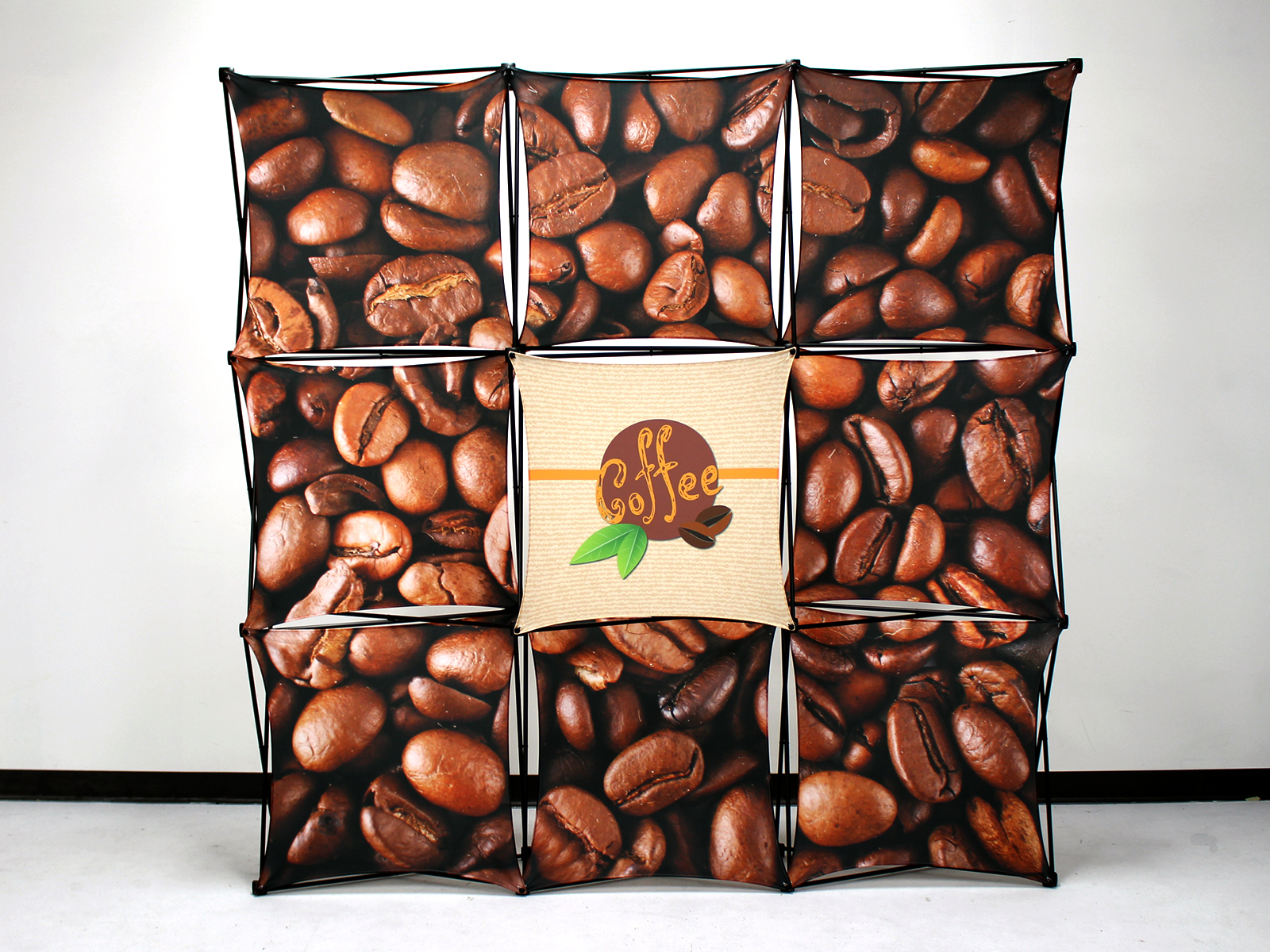 The collapsible pop-up frame uses magnetic connectors with the option of J-hook connectors for more custom or weight bearing displays. Stretch fabric graphics come pre-attached to the frame and are easily changed out in the field! Kits come with graphics, frame and drawstring carry bag. Kits displayed are our most popular versions.