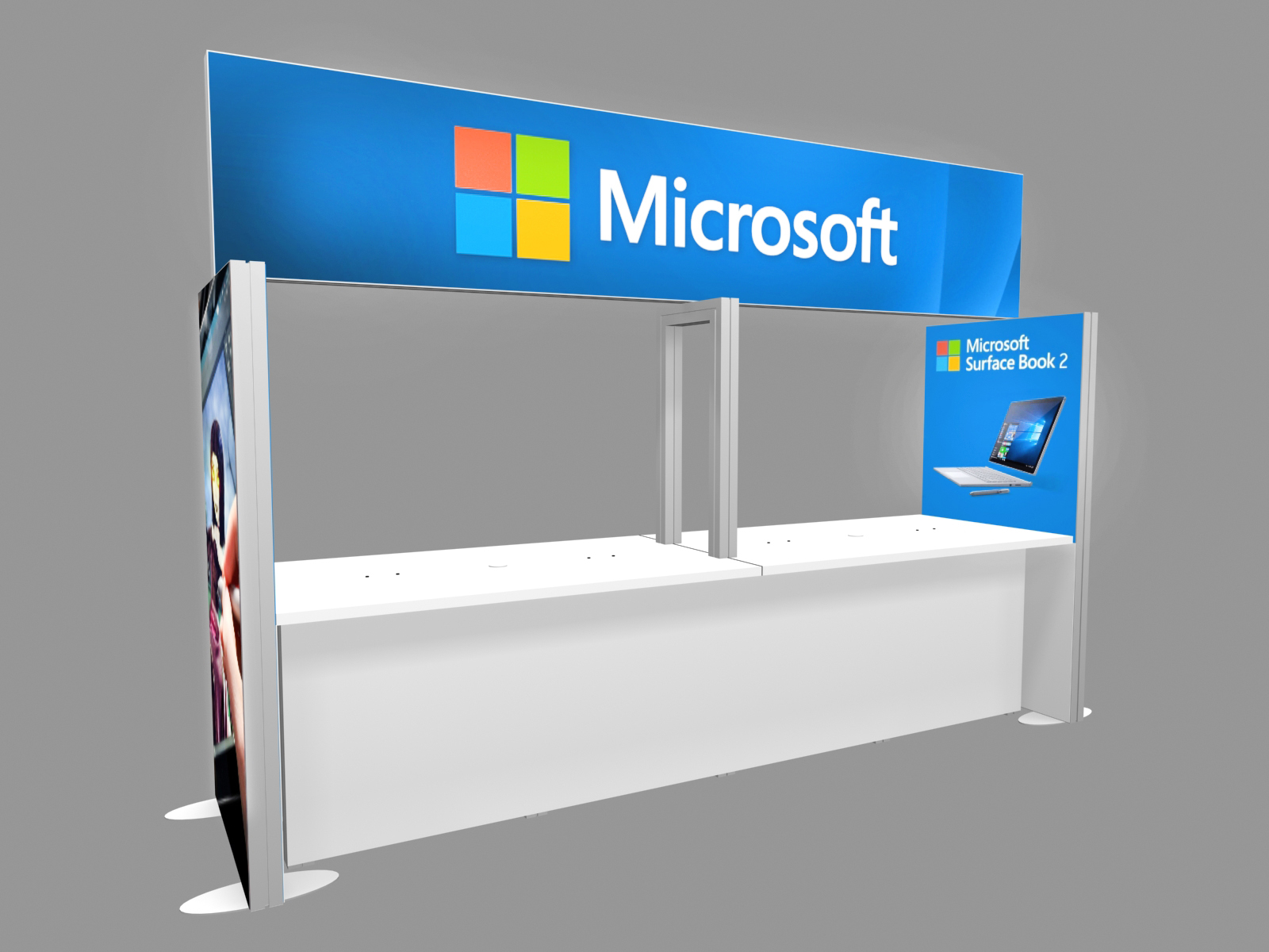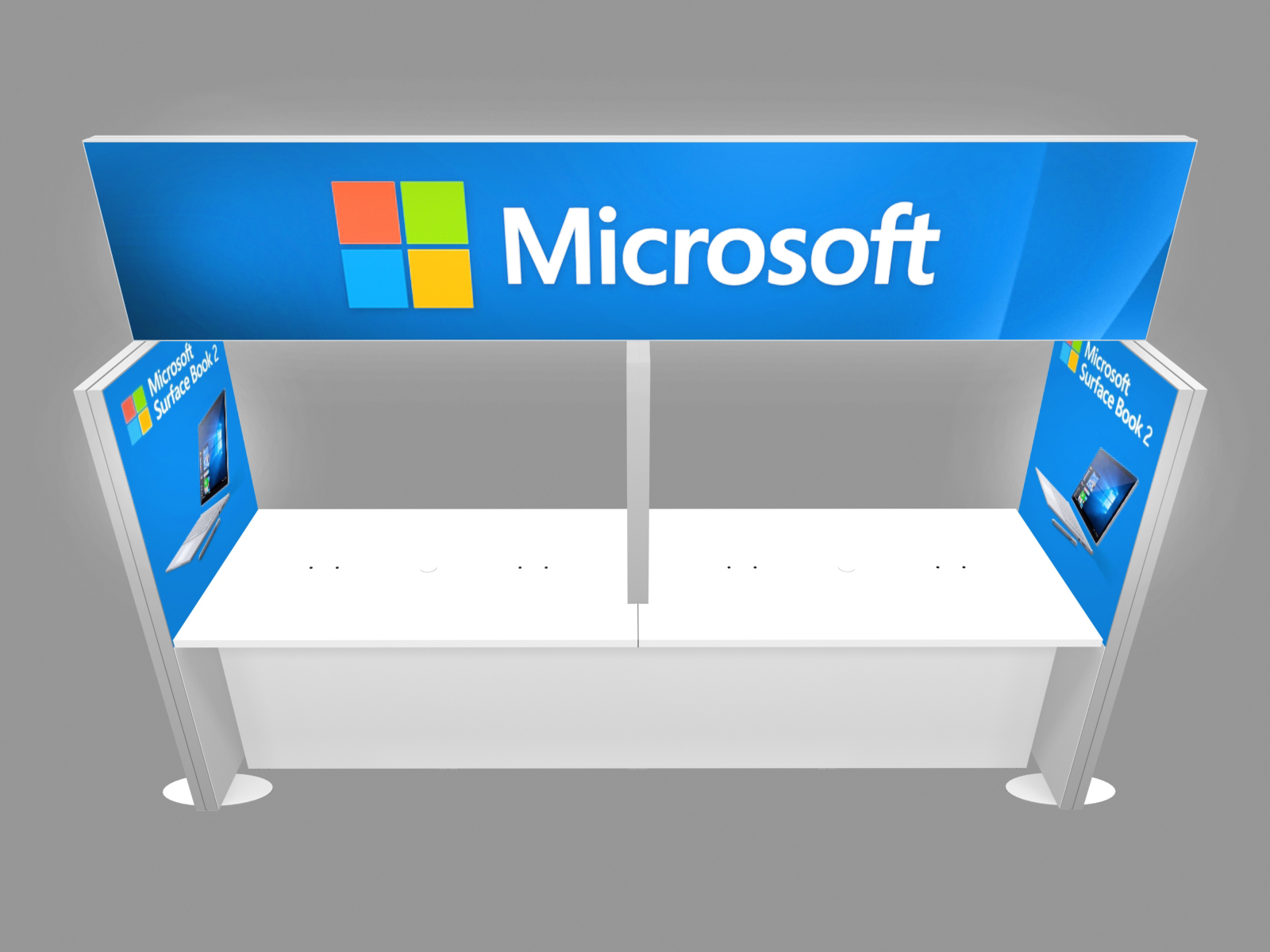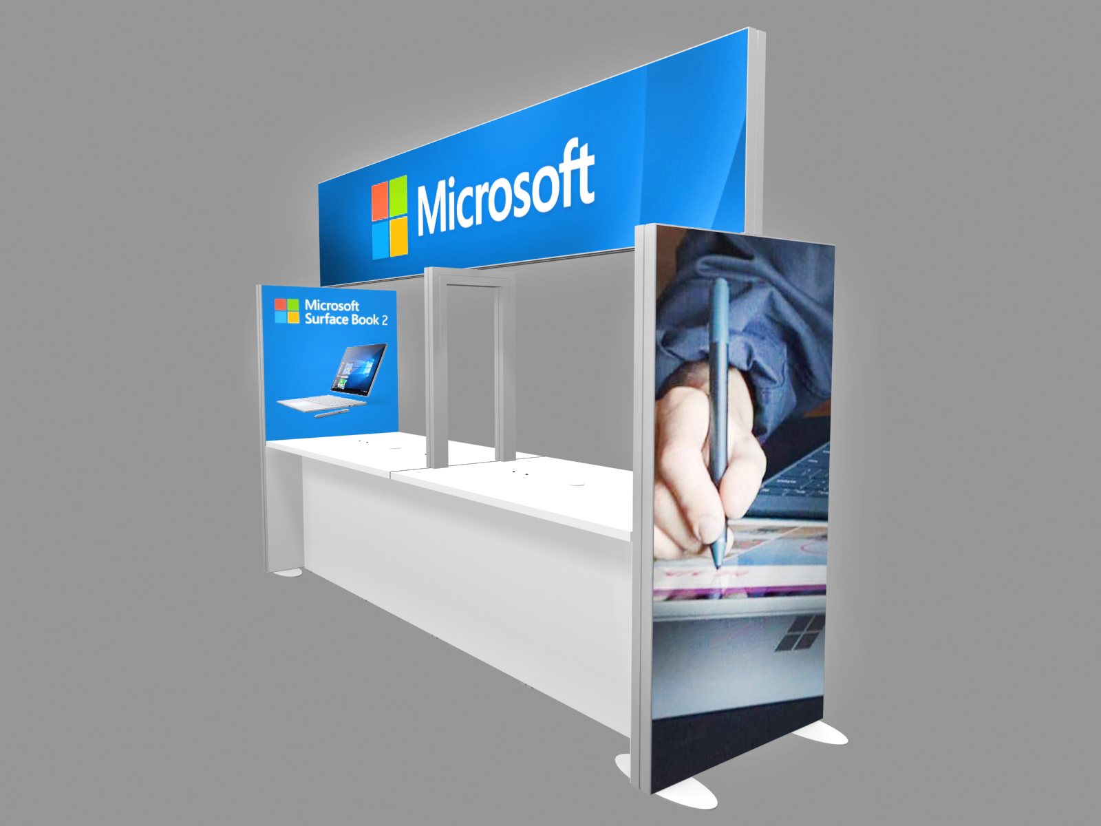 When choosing the right counter or pedestal for your display, consider how you will use it on the show floor. Do you need locking storage? Will the counter or pedestal hold a lead retrieval machine, laptop, or other electrical device? If so, you will need wire management. That may be as simple as ordering a grommet for the counter. If you are planning to use a tablet computer, consider the tablet insert option for the counter top. This option is practical, attractive, and secure for many tablets, such as an iPad.