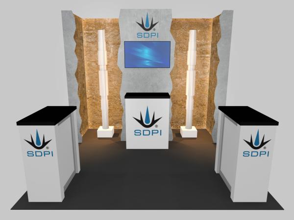 Many exhibits are re-configurable to smaller inlines or larger islands. Want to see this trade show display with your branding? No problem. Give us a call or send us an email.