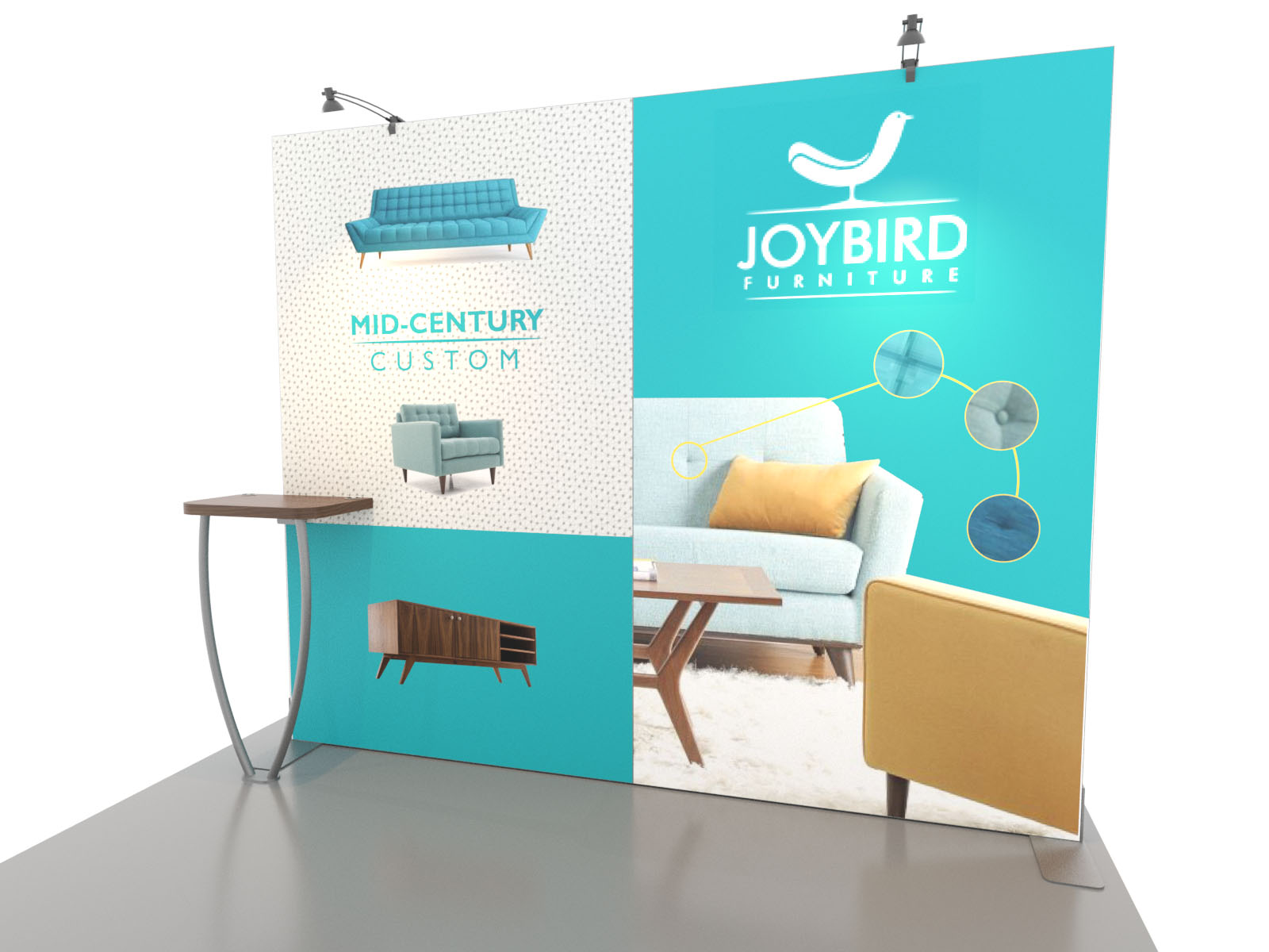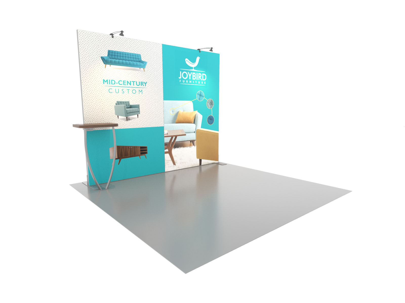 Personalize your Symphony Display with attractive counters, workstations, floating graphics, iPad clamshells, and monitor mounts. The lightweight aluminum frames are engineered for SEG dye-sublimated fabric graphics for a seamless, wrinkle-free look. Add floating graphics for additional visual layering and branding.