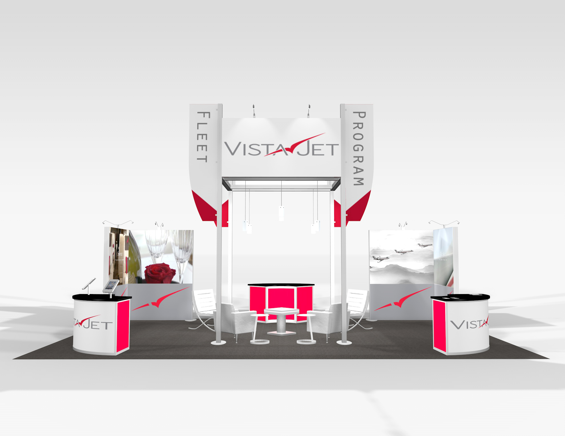 The Rental Island Exhibits go way beyond a pretty picture. We've incorporated key features such as large graphics, private and semi-private conference rooms, towers with locking storage access, and workstations and reception counters with secure storage. Not enough? Then add product shelves, large and small monitors for presentations, a variety of light fixtures, and hanging signs for high visibility from anywhere on the show floor. We also offer three contemporary double-deck configurations.