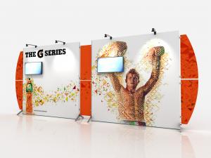 If you are considering a pop up display, then consider the SEGUE Sunrise instead. The Sunrise offers all the advantages of a pop up -- portability, ease of set-up, and a large graphic – with the benefits of a large format tension fabric graphic, aluminum frame, and no-tools assembly. Assembly takes less than 40 minutes for most kits. Best of all, the 7 ½ x 7 ½ silicone edge graphic guarantees a perfect fit every time, and the fabric graphics mean worry-free performance from show to show. You can even wash them.