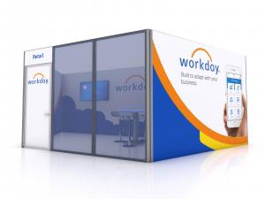 The two-sided panels are designed for either direct print graphics or SEG fabric graphics. There's internal wire management, and shelves, counters, monitor mounts, tablet kiosks, and charging stations are available for either purchase or rent. Most pod configurations pack in one or two crates, saving you on freight and drayage (material handling). And assembly takes half the time of traditional heavy meeting modules. While there are modular panel wannabes, only Gravitee combines no tools, no loose parts, and a lifetime warranty on workmanship. Rental or purchase options are available