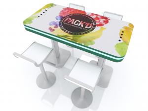 There are rental islands. Then there are Gravitee One-Step Island Exhibits. When you choose a RE-9121 Gravitee Island, you get a contemporary display with large graphics, practical accessories, and mostly tool-less assembly. The full-size panels slide together with attached connectors, whether flat or curved. Most islands pack in one or two crates, saving you on freight and drayage (material handling). And assembly takes about half the time of a traditional custom exhibit. The RE-9121 features an open floor plan, perfect for one-on-one meetings or group presentations The 12 ft. high storage closet ensures your valuables are safe and that the booth space is clean and unclutter throughout the show. And then there's the overhead hanging sign... a must have for any island at a large trade show where you want to be seen.