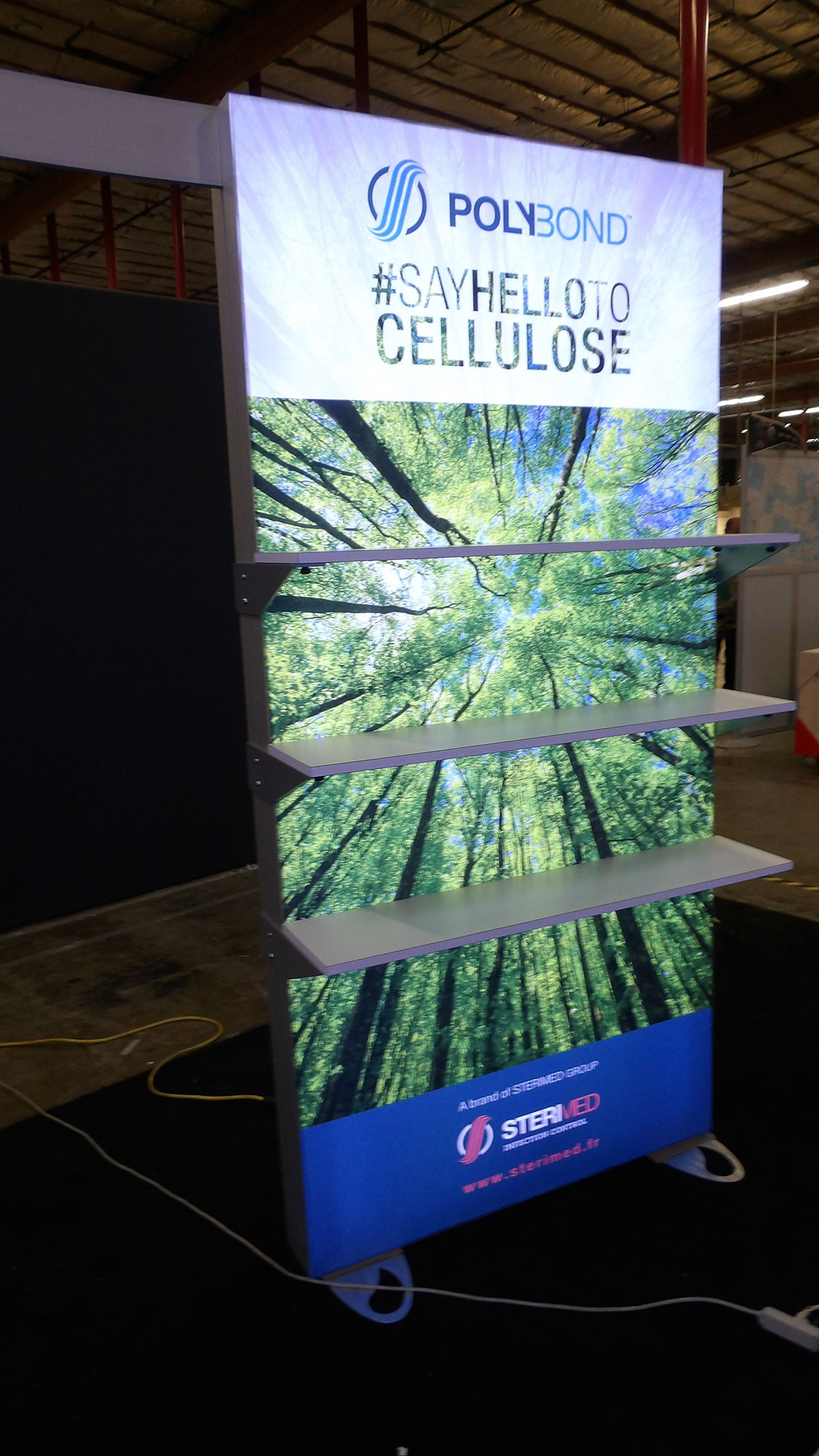 Sustainable Island with LED Backlit Fabric Graphics, Locking