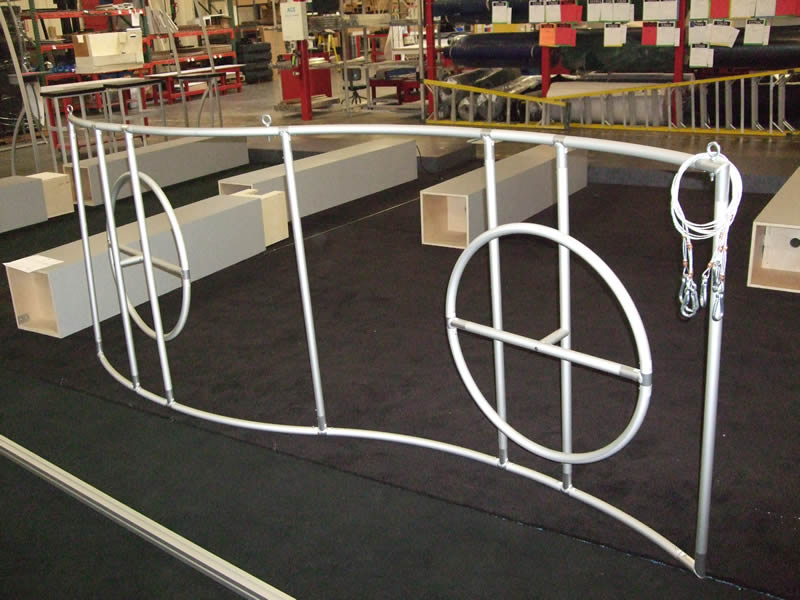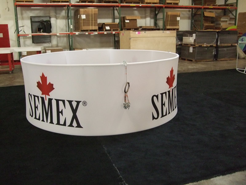 Aero Overhead Hanging Signs -- TF-1001 Round and TF-1006 3-Sided Curve (shown without pillowcase graphics) Aero Overhead Hanging Signs -- TF-1001 Round and TF-1006 3-Sided Curve (shown without pillowcase graphics)
