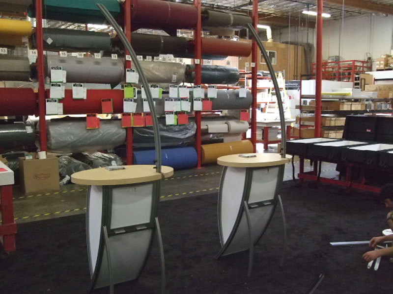 Comment: Visionary Designs are hybrid exhibits. Hybrids are constructed from an aluminum frame and tension fabric graphics, but may include other modular display components.
