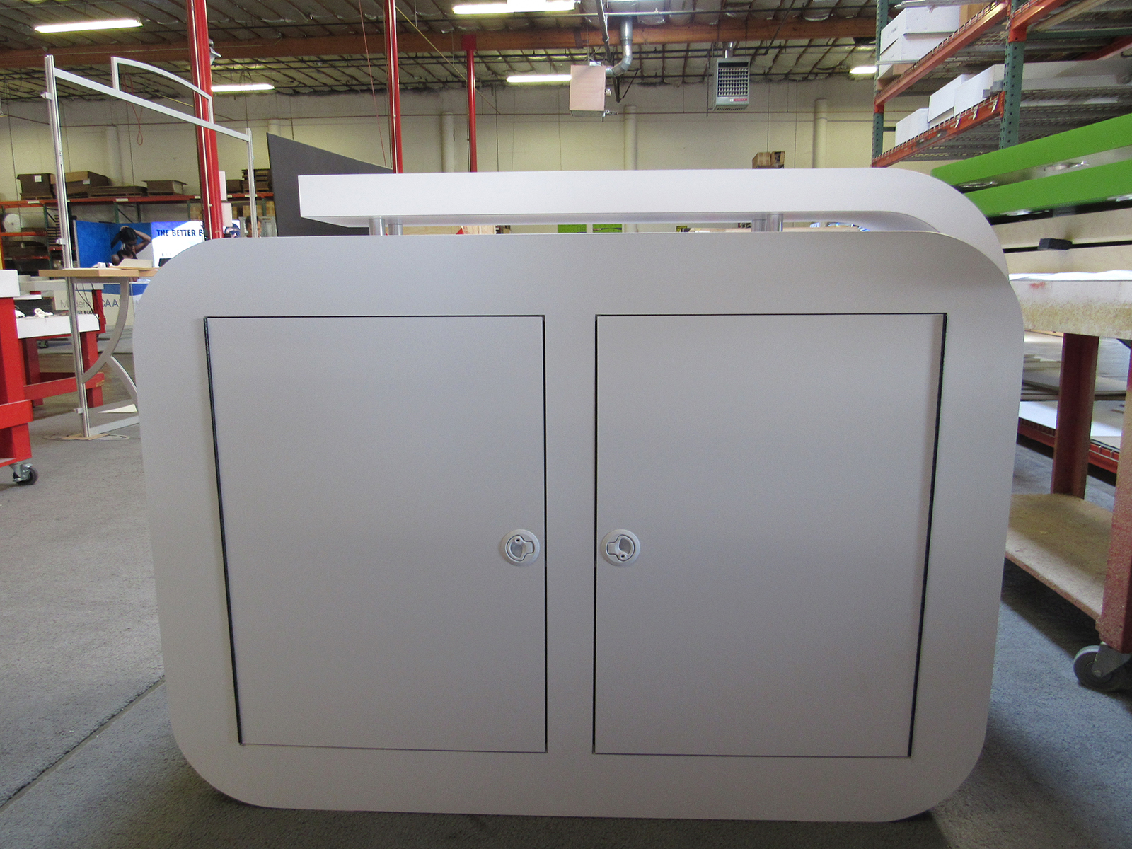 Custom Counter with Backlit Graphic and Locking Storage (shown