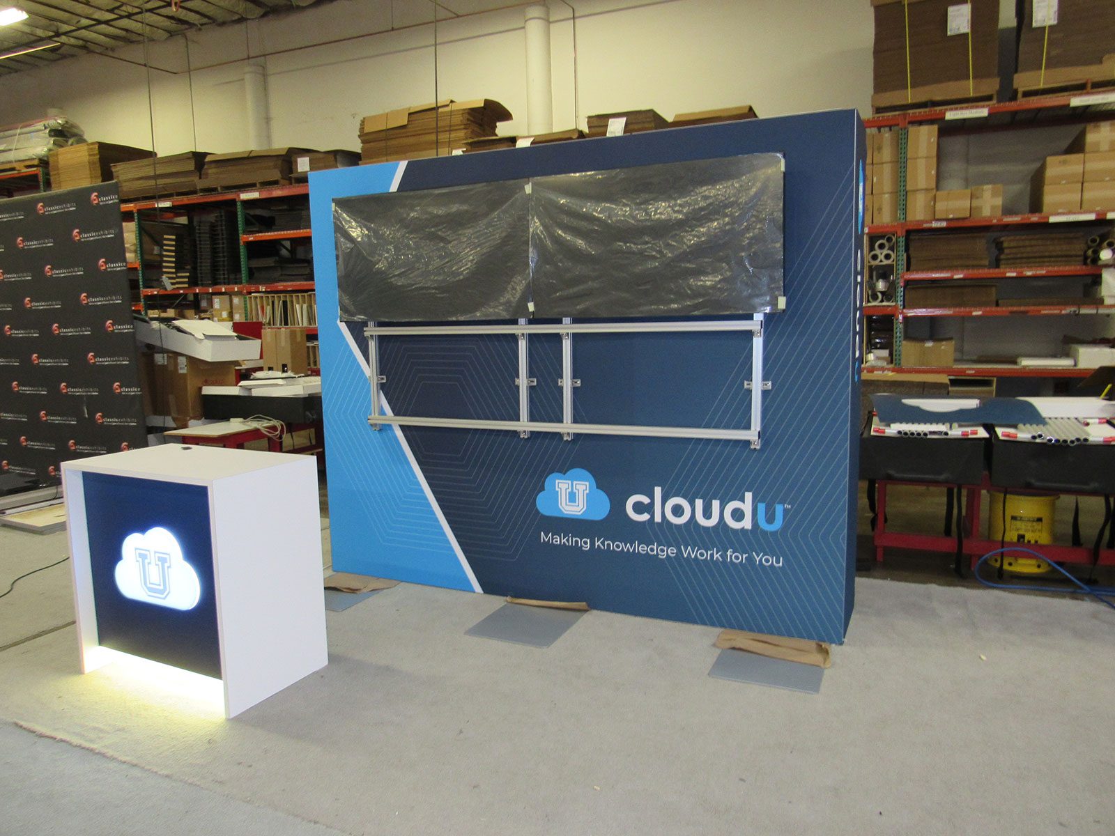 Custom Modular Inline Exhibit with Backlit Graphics, Header with