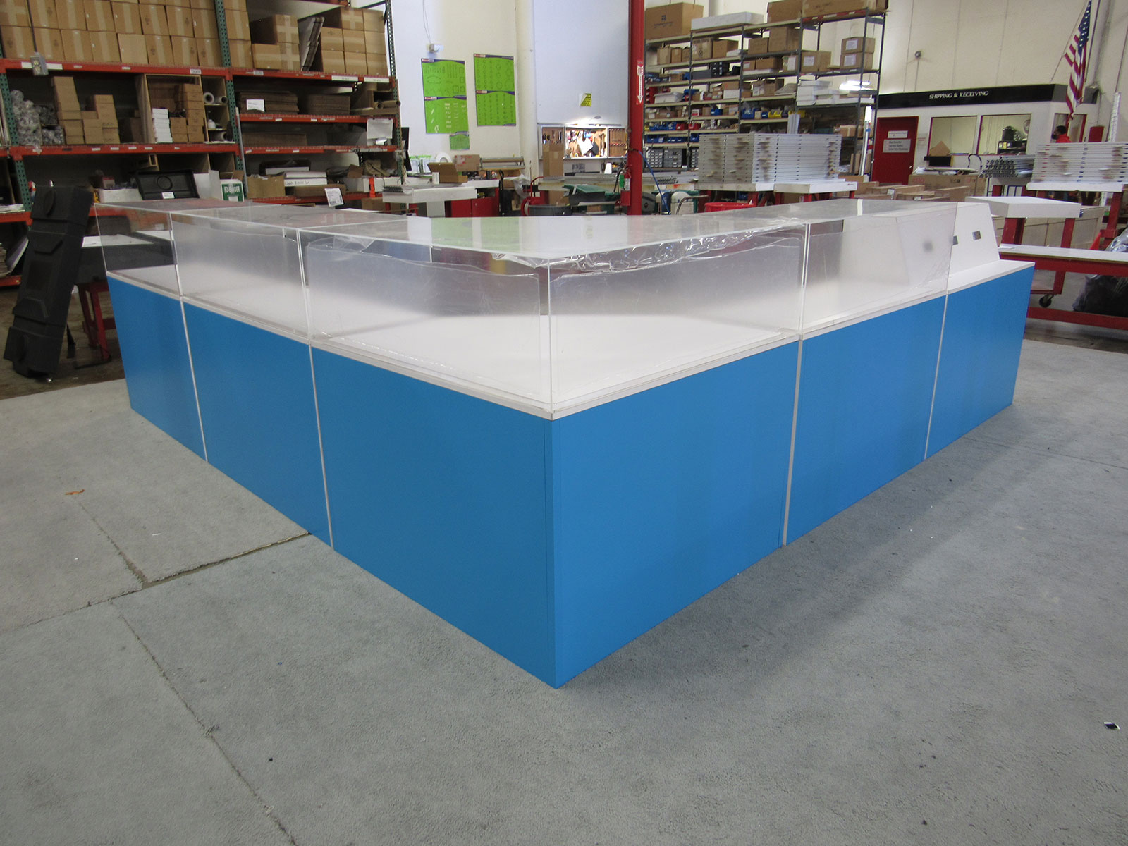 Large Rectangular Counter with Curved Top, (2) Double-Sided Kiosks