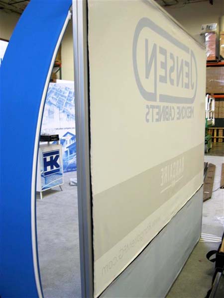 eSmart ECO-1009 with Paradise Fabric Graphics, LED Luminator Lights, Monitor Mount, FSC Counter Top and Recycled Aluminum Extrusions. ECO-18C Sustainable Counter/Podium -- Image 1 eSmart ECO-1009 wit ECO-18C Counter -- Image 2 eSmart ECO-1009 wit ECO-18C Counter -- Image 3 eSmart ECO-1009 wit ECO-18C Counter -- Image 4