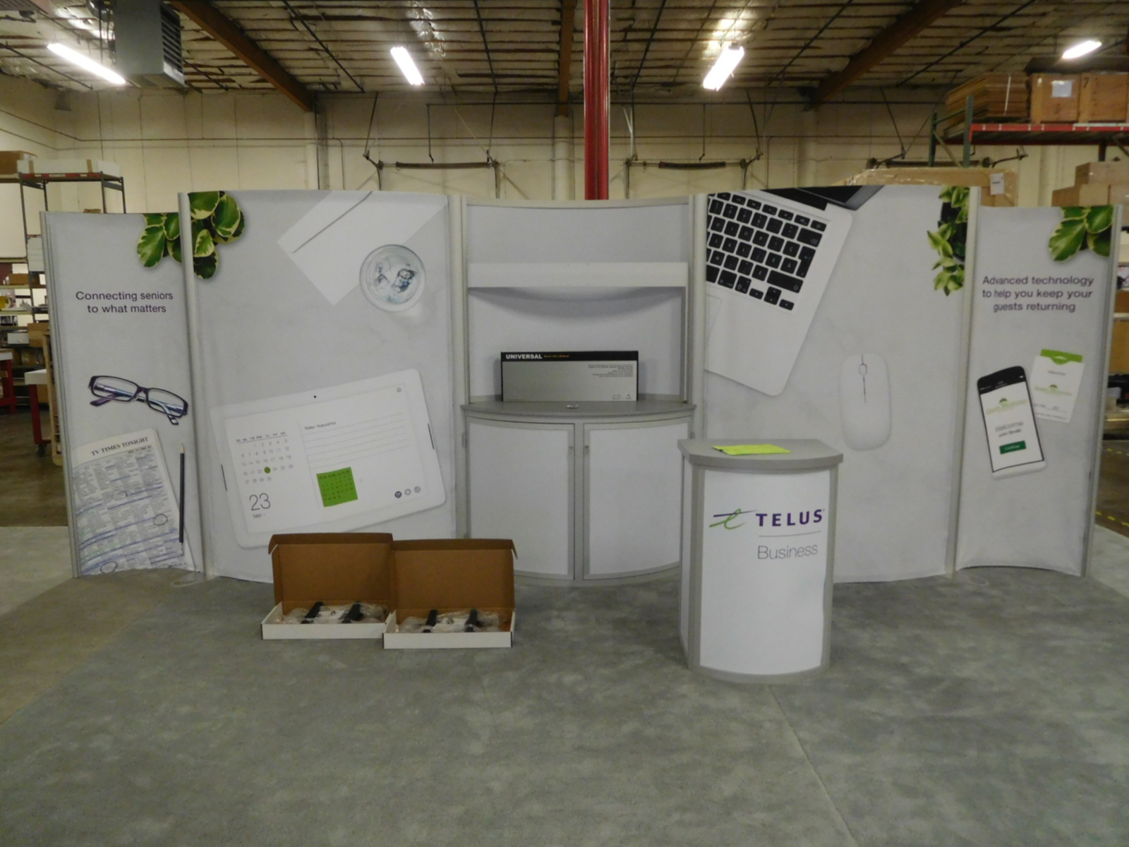 ecoSmart ECO-2018 Sustainable Display with Fabric Graphics, Large Monitor Mount, Divider Wall, and ECO-5C Podium [39036]