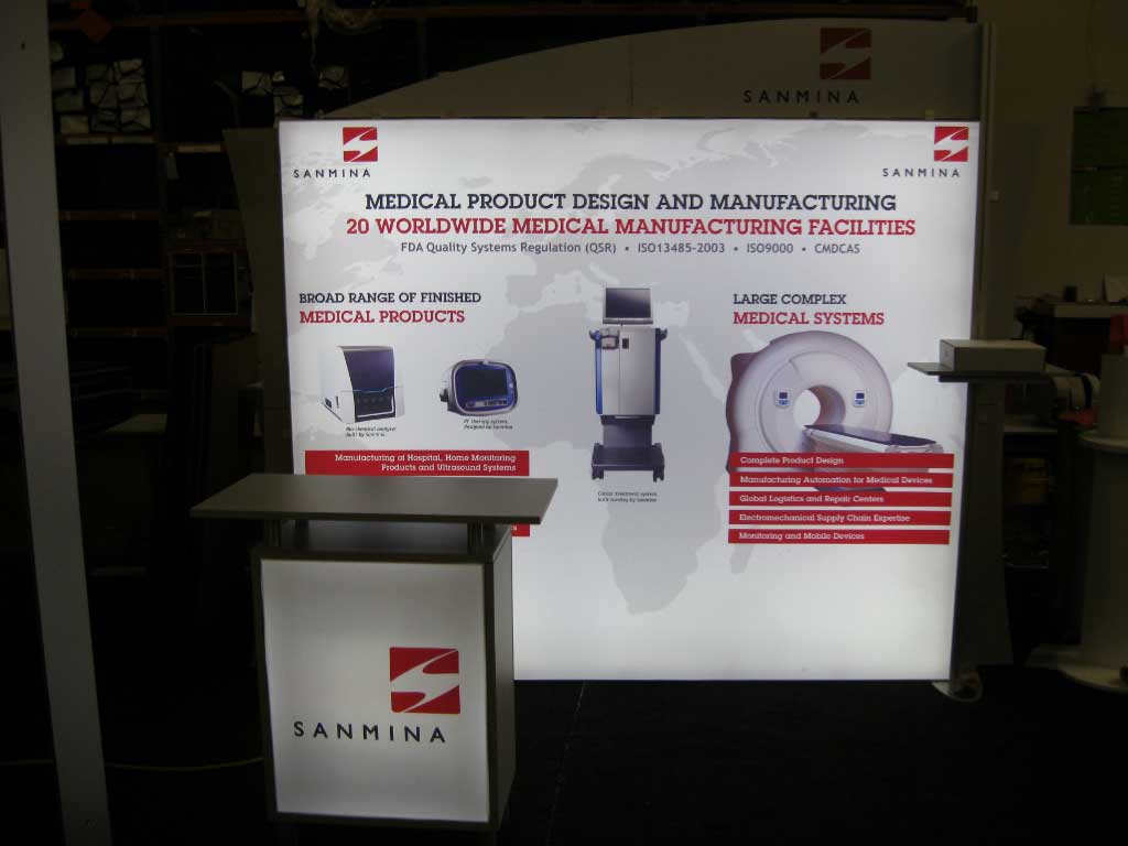 ecoSmart Modified ECO-1038 Sustainable Display with Recycled Fabric Graphics, Storage Closet with (2) Locking Doors and Interior Shelf, (1) Monitor Mount on Closet, (2) Energy Efficient LED Lights and a ECO-47C Backlit Counter [52132]