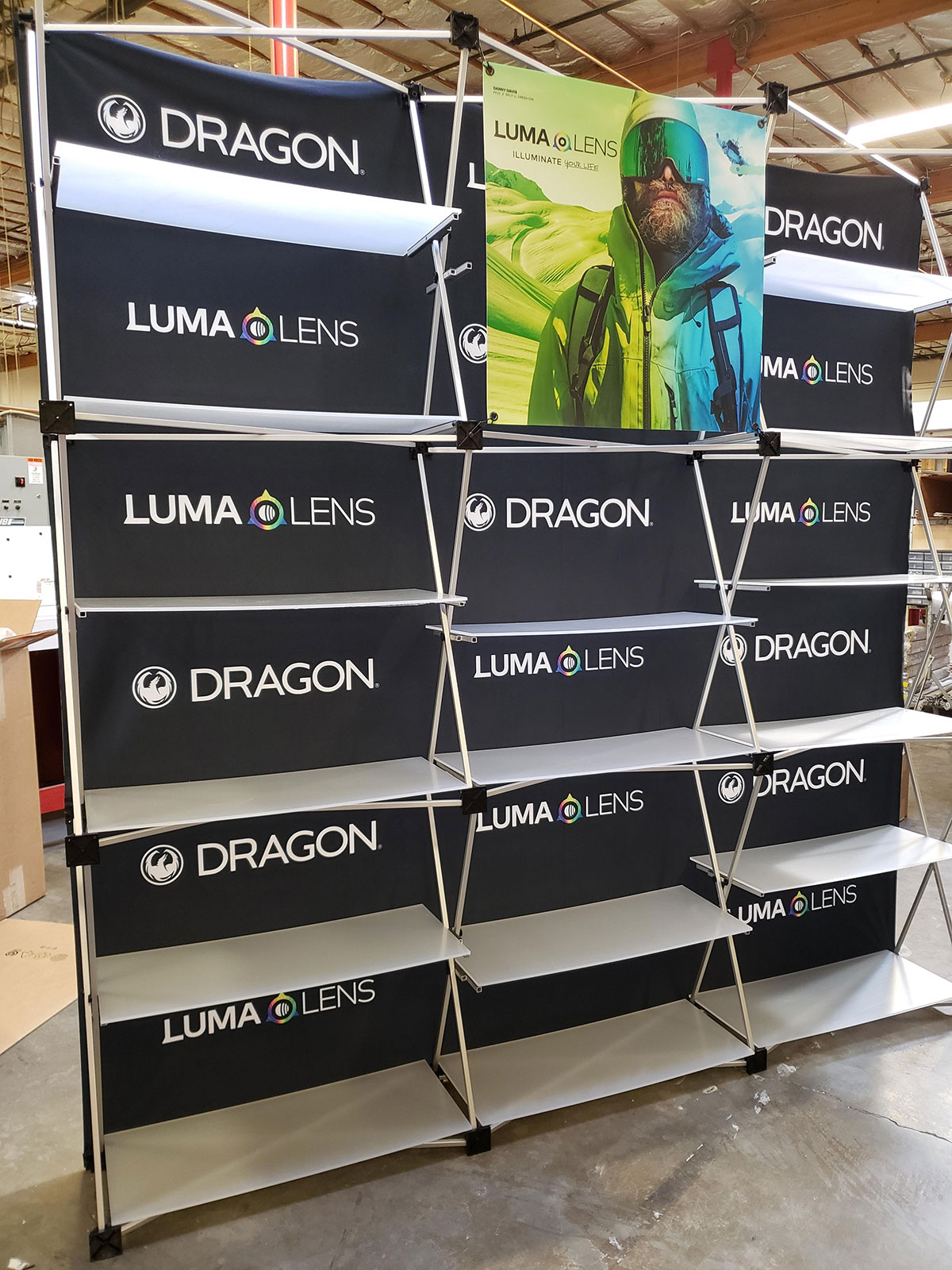 Modified FG-116 Quadro Pop Up Displays with Shelves, Direct Print Graphic, and Rear Fabric Graphic [56475]