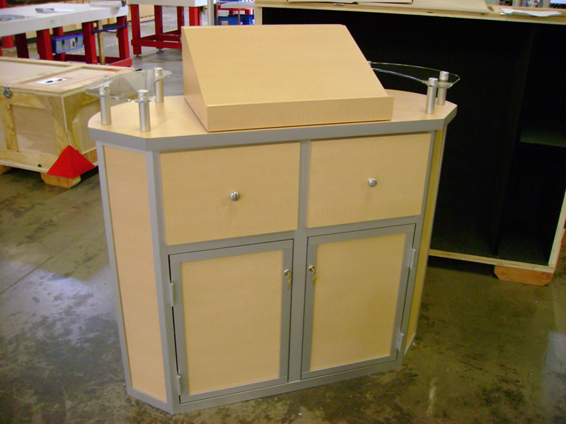 Custom MOD-1189 Counter with Lecturn, Drawers, and Locking Storage and a Slot for Business Cards Too!