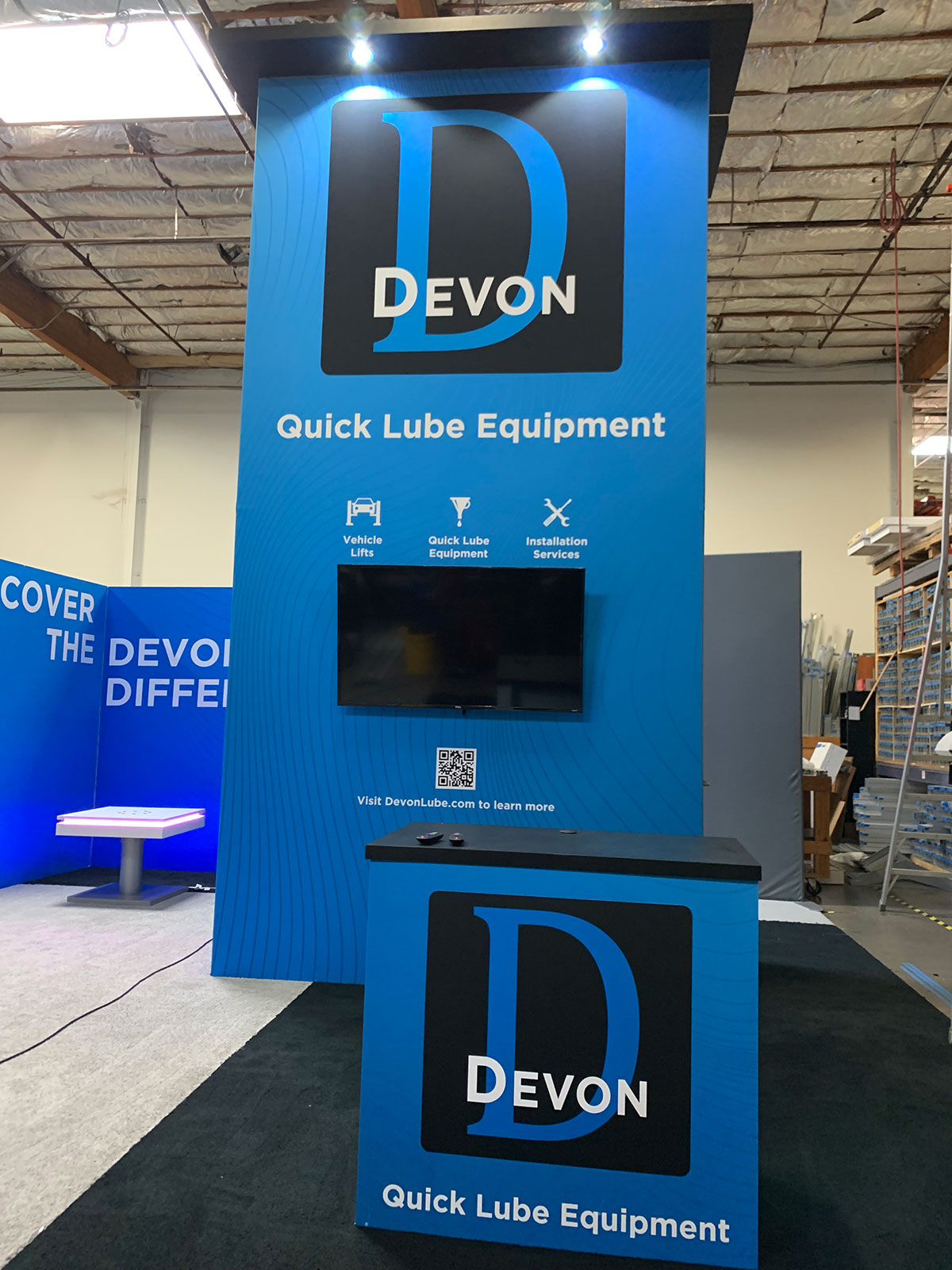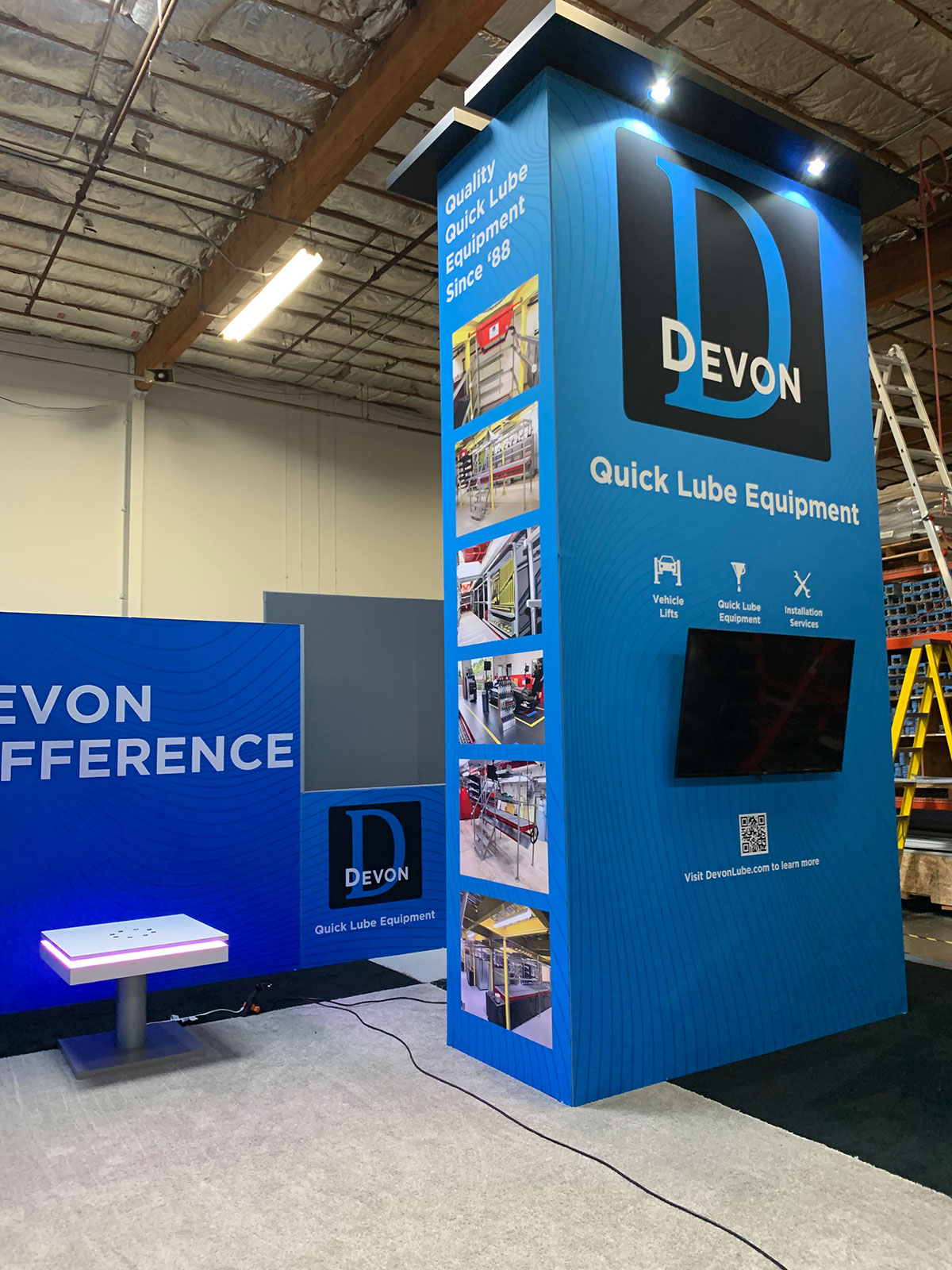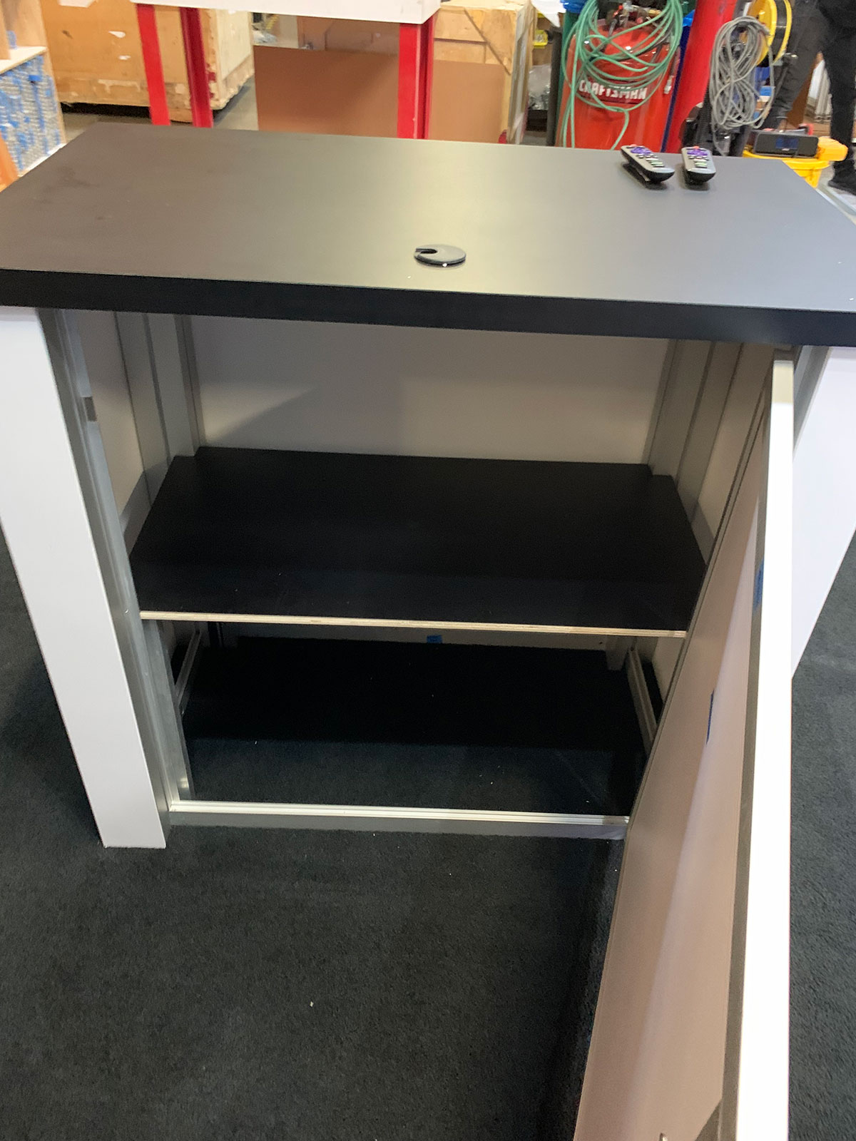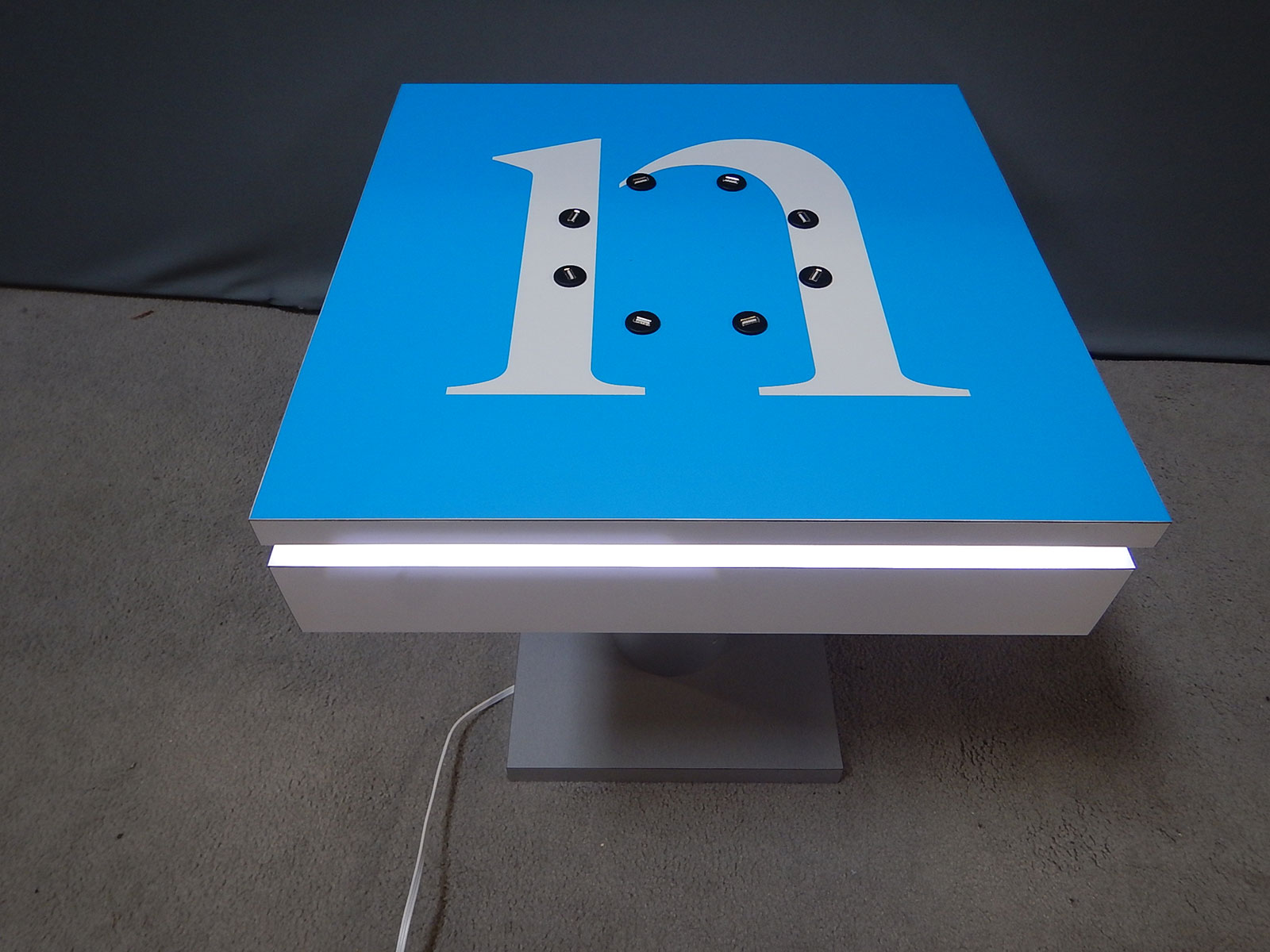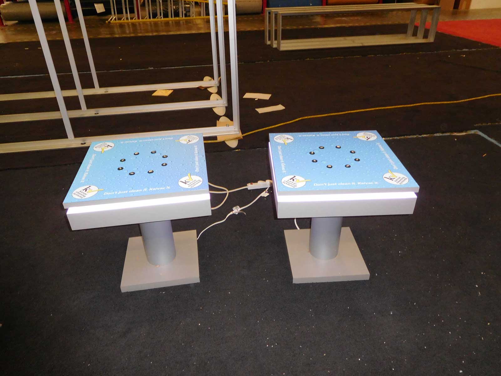 Charging Station Table, SEG Fabric Graphic, and Vinyl Applied Top