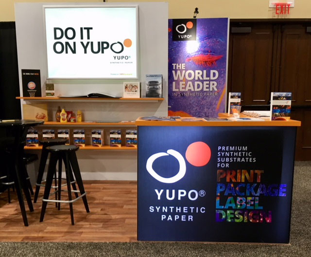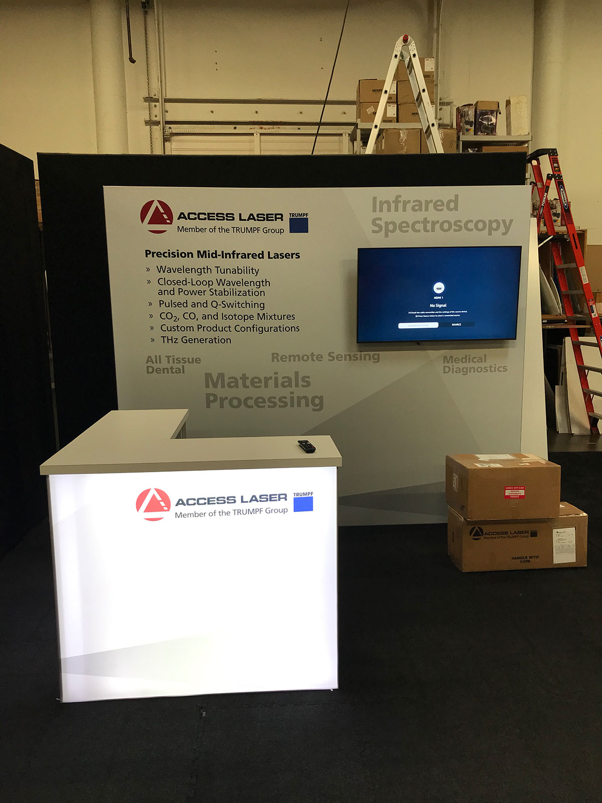 Backlit L-Shaped Counter, 50" Monitor, and SEG Fabric Graphics.