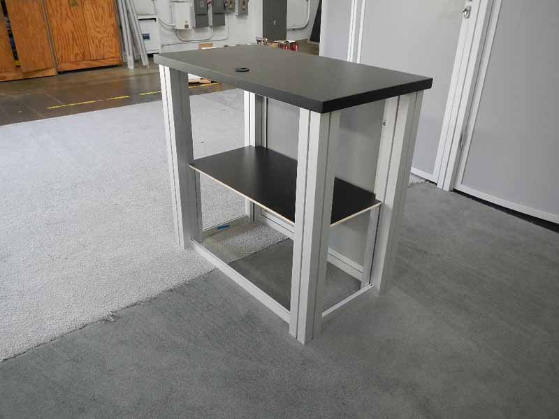 RENTAL: RE-1012 Includes Black Flat Canopy, Halogen Arm Lights, RE-170 Literature Shelves, RE-1216 Connected Workstation, Large Monitor Mount, and RE-1202 Reception Desk