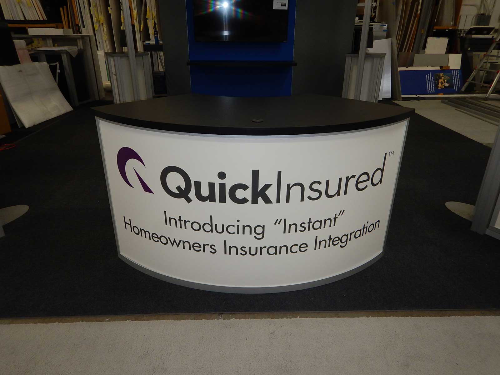 Large Curved Counter, (4) Arm Lights, Sintra Graphics for Tower,