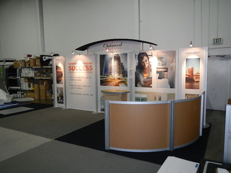 RENTAL: RE-2021 with Arch Canopy, Halogen Arm Lights, RE-1201 Reception Counter, Tension Fabric Graphics, and Sintra Header Graphic