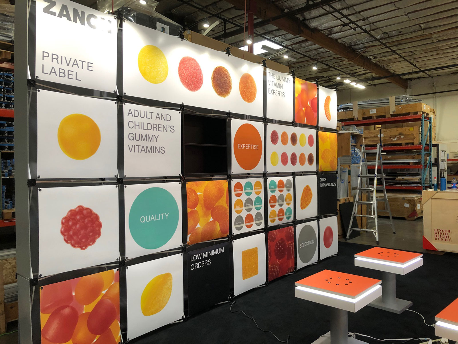 Counter Kiosk, SEG Fabric Graphics, Vinyl Graphics, Drop Ceiling,