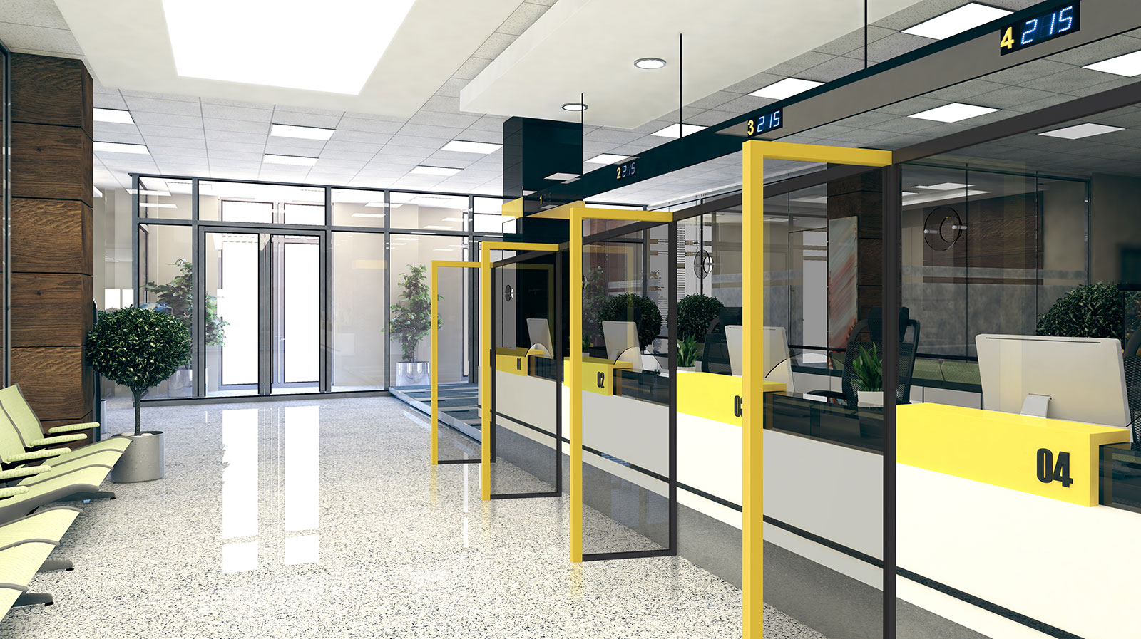 Bank Lobby with Teller Safety Dividers