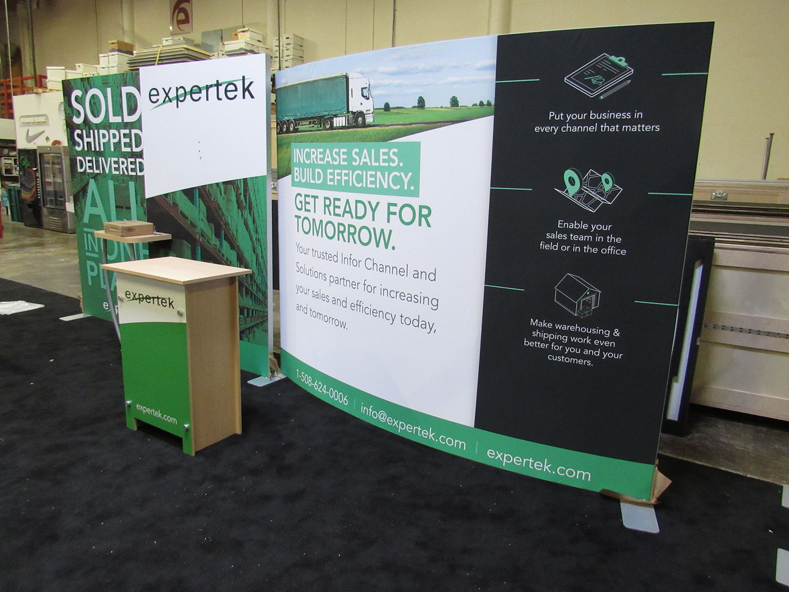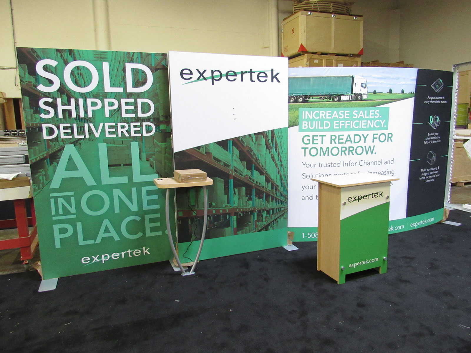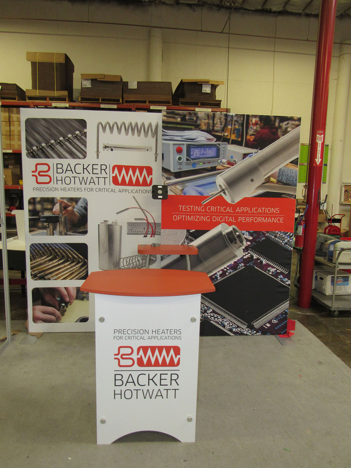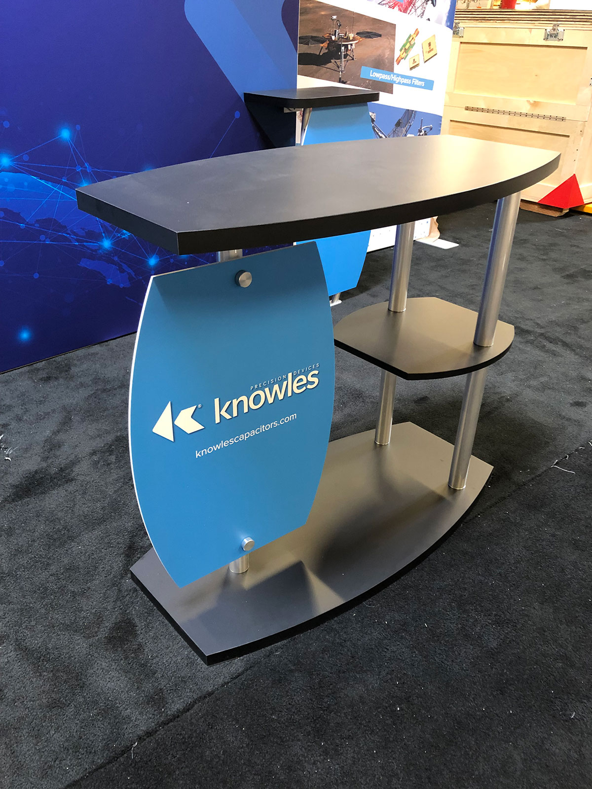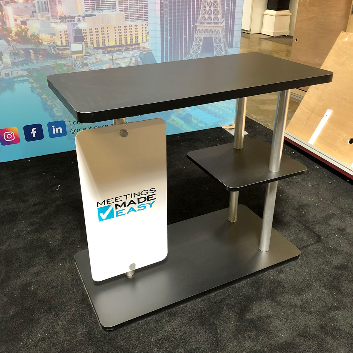 Locking Counter, Monitor Mount, SEG Fabric Graphics, and Backwall