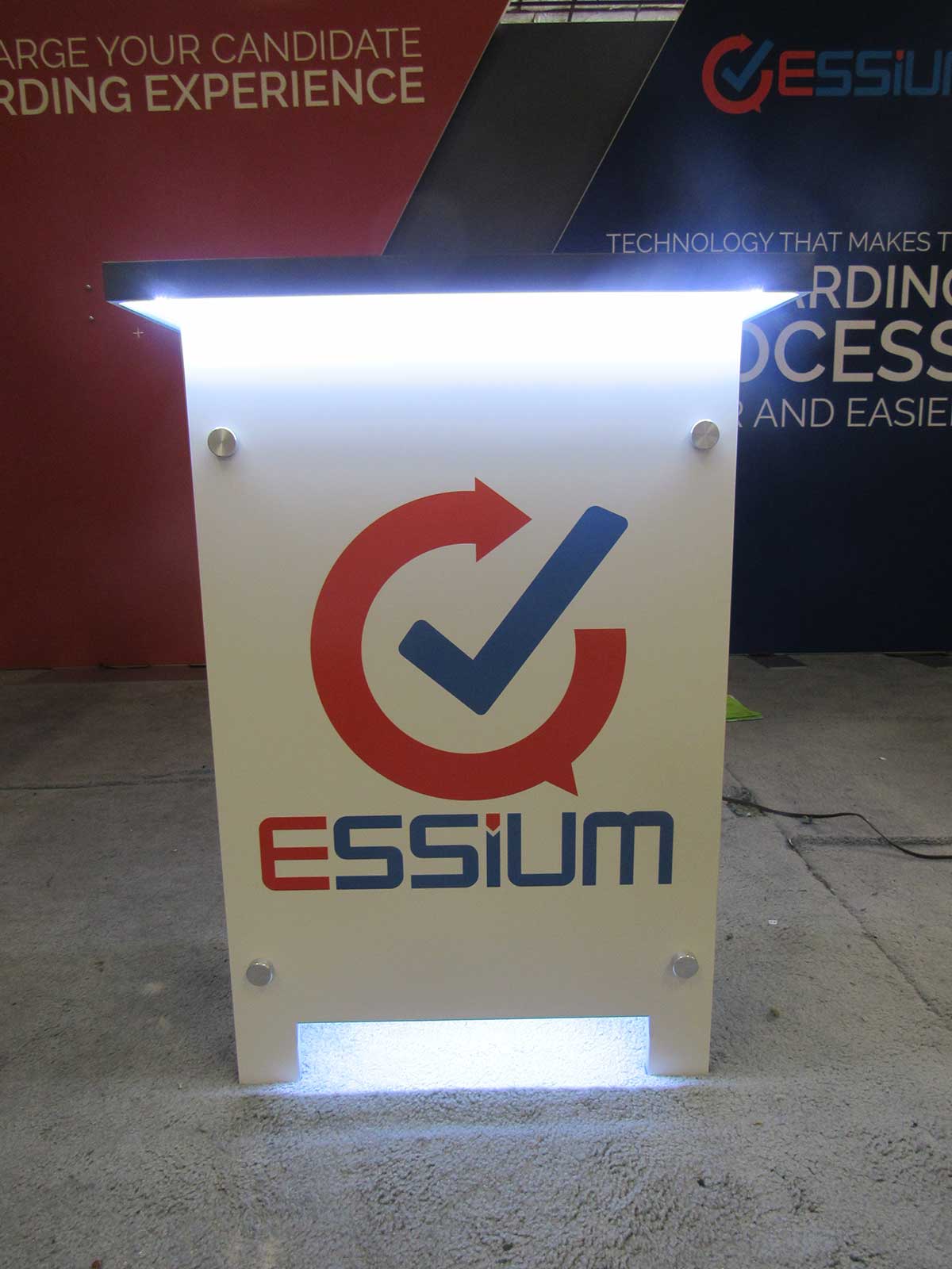 Custom Aero Backwall Frame with Pillowcase Graphic, SuperNova Lightbox with SEG Graphic, (1) SYM-407 Counter with Locking Storage, (1) Modified SYM-407 Counter, and LED Stem Lights Custom Aero Backwall Frame with Pillowcase Graphic, SuperNova Lightbox with SEG Graphic, (1) SYM-407 Counter with Locking Storage, (1) Modified SYM-407 Counter, and LED Stem Lights
