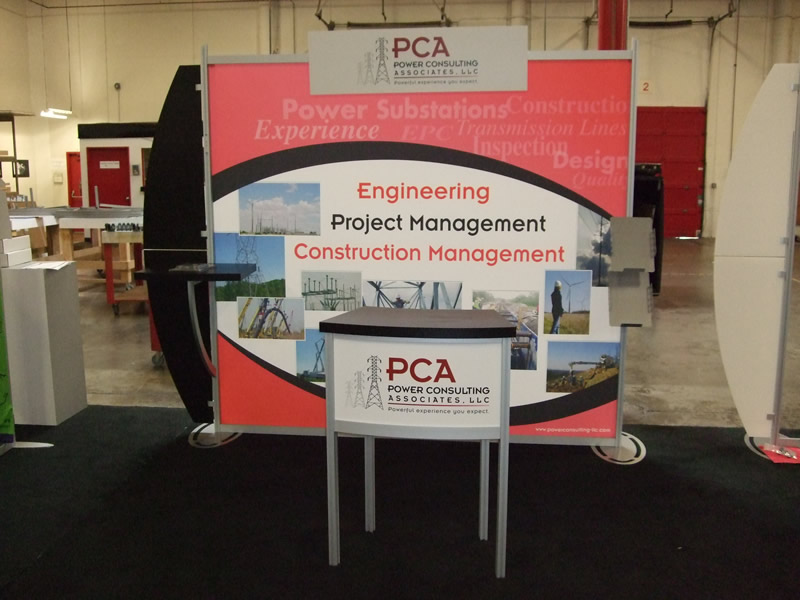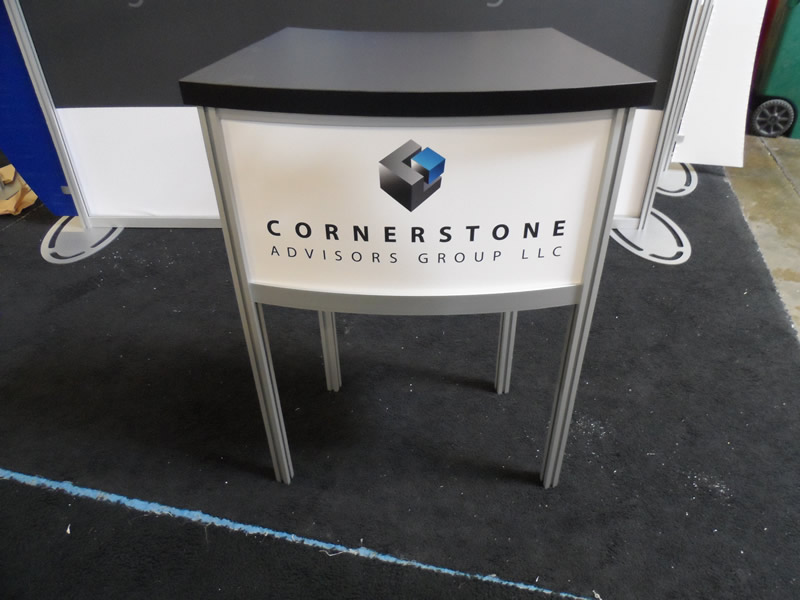 VK-2108 Hybrid Trade Show Booth, (4) 5 Watt LED Lights, Large Format Tension Fabric Graphics, (2) Concave or Convex Two-Piece Wings, MOD-5000 Two Section Custom Cabinet, Adhesive Vinyl Graphic [54325]