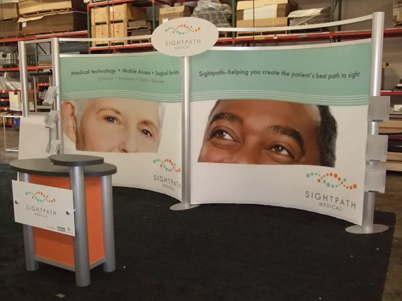 Modified VK-2072 Visionary Designs Inline with Tension Fabric Graphics, Stem Lights, Large Monitor Mount, and (6) Literature Trays