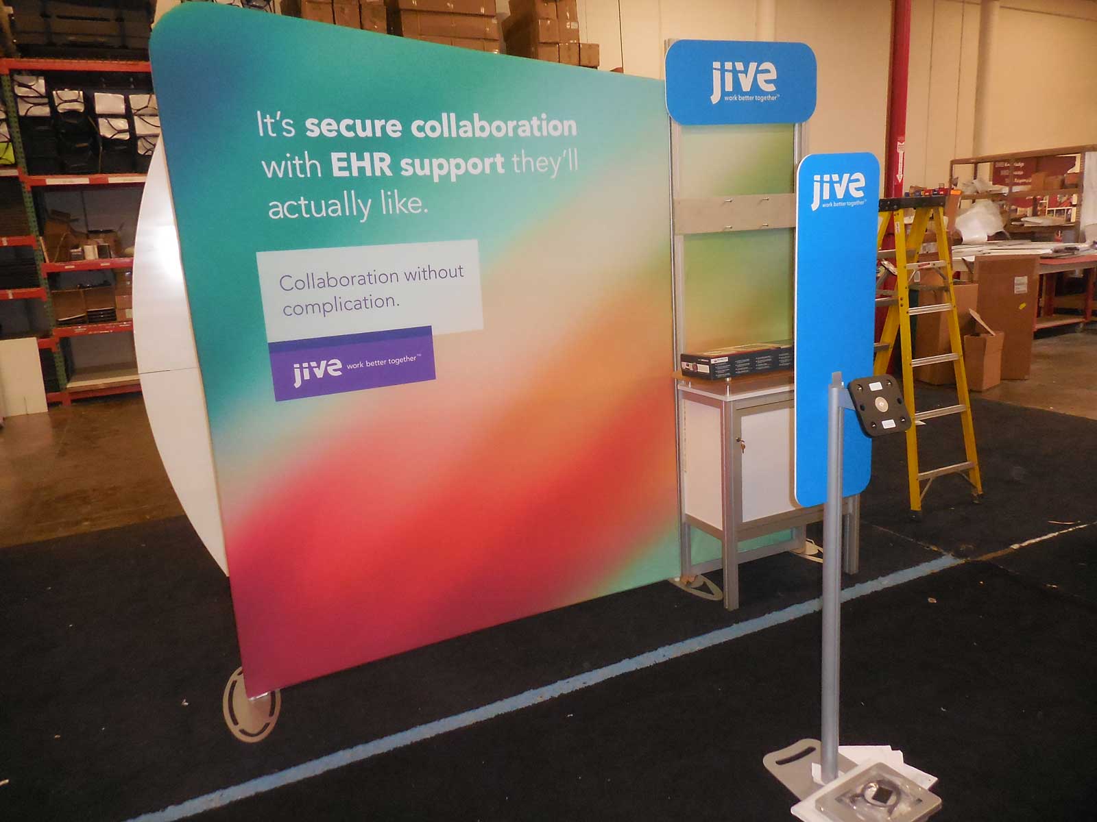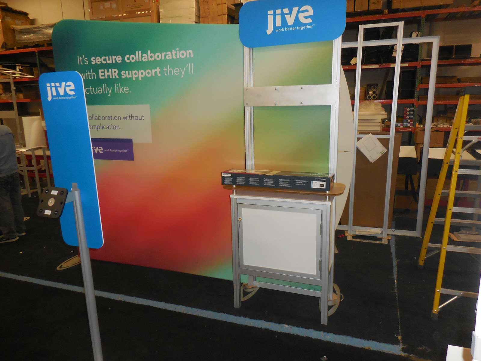 Modified TF-513 Visionary Designs Hybrid Exhibit with Tension Fabric Graphics, Monitor Mount, Storage, and MOD-1369 iPad Stand with Graphics [47060]