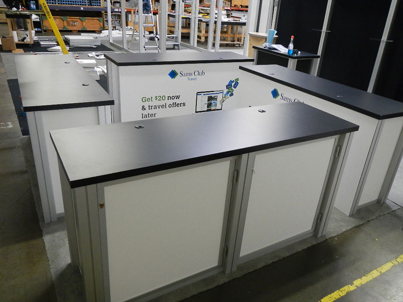 RENTAL:  (4) RE-1207 Rectangular Counters with Locking Doors and Interior Shelves. Sintra Infill Panels and Graphics -- Image 1 RENTAL:  (4) RE-1207 Rectangular Counters with Locking Doors and Interior Shelves. Sintra Infill Panels and Graphics -- Image 2 RENTAL:  (4) RE-1207 Rectangular Counters with Locking Doors and Interior Shelves. Sintra Infill Panels and Graphics -- Image 3