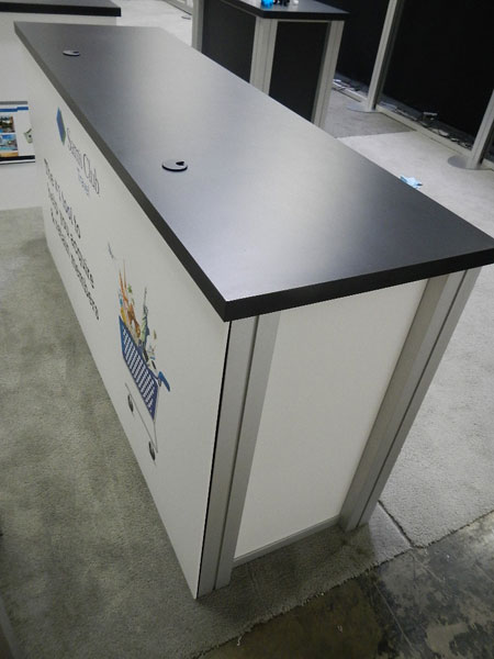 RENTAL: (4) RE-1207 Rectangular Counters with Locking Doors and Interior Shelves. Sintra Infill Panels and Graphics