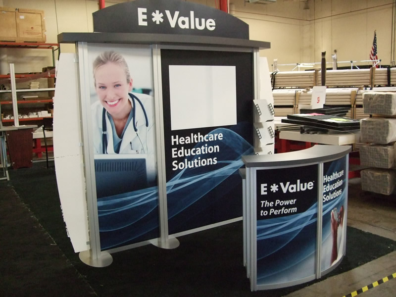 Visionary Designs Modified VK-1032 Hybrid Exhibit with Tension Fabric Graphic and Modular Reception Counter