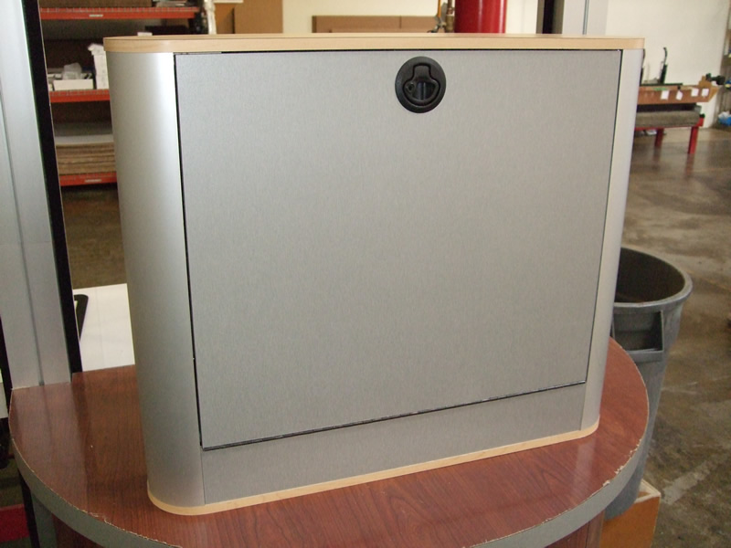 Custom Laptop Case with Locking Door and Glide Hinge -- Image 1 Custom Laptop Case with Locking Door and Glide Hinge. Mounts to Truss. Custom Laptop Case with Locking Door and Glide Hinge -- Image 2