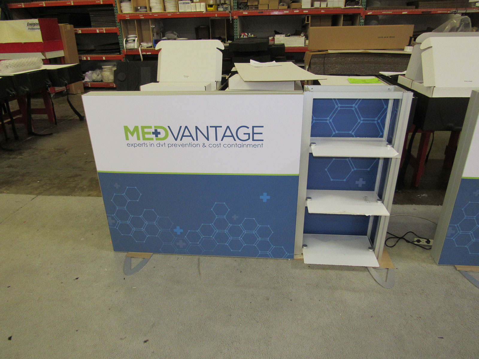 (2) VK-0005 Backlit Portable Tabletop Displays with Fabric Graphic and Shelves VK-0005 Backlit Tabletop Display -- View 2 VK-0005 Backlit Tabletop Display -- View 3