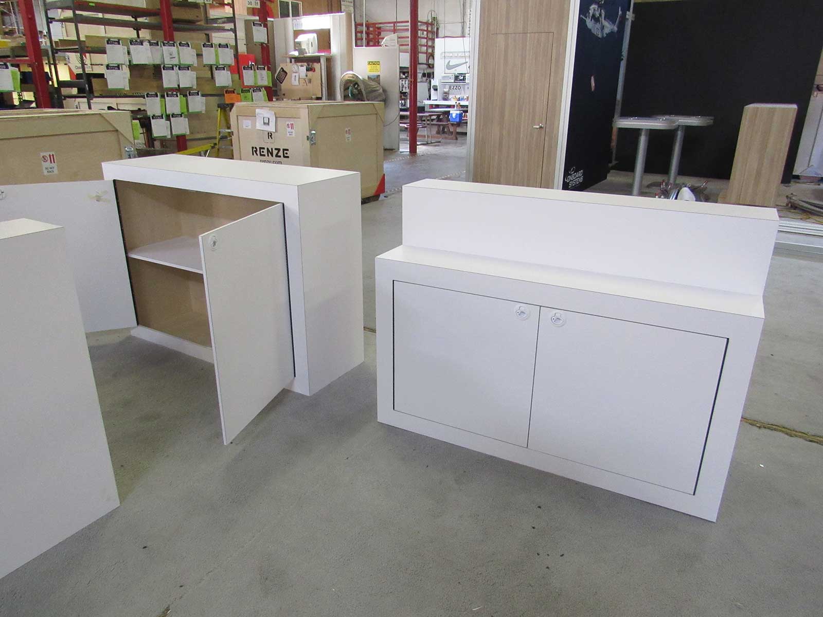 (6) Custom Wood Counters with Locking Storage and Shipping Crates (6) Custom Wood Counters with Locking Storage and Shipping Crates (6) Custom Wood Counters with Locking Storage and Shipping Crates (6) Custom Wood Counters with Locking Storage and Shipping Crates