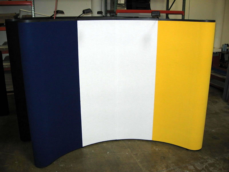 Colorful 10' Quadro S Pop Up Display and MOD-1140 Counter with Locking Door and Shelf