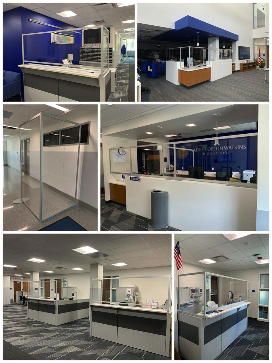Personal Protection Safety Dividers for Offices in a High School with Engineered Aluminum and Clear Acrylic