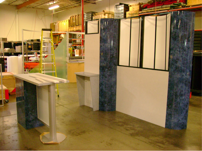 10' x 10' Visionary Designs Hybrid Display (missing tension fabric graphic) and 10' x 10' Euro LT Laminate Modular Display
