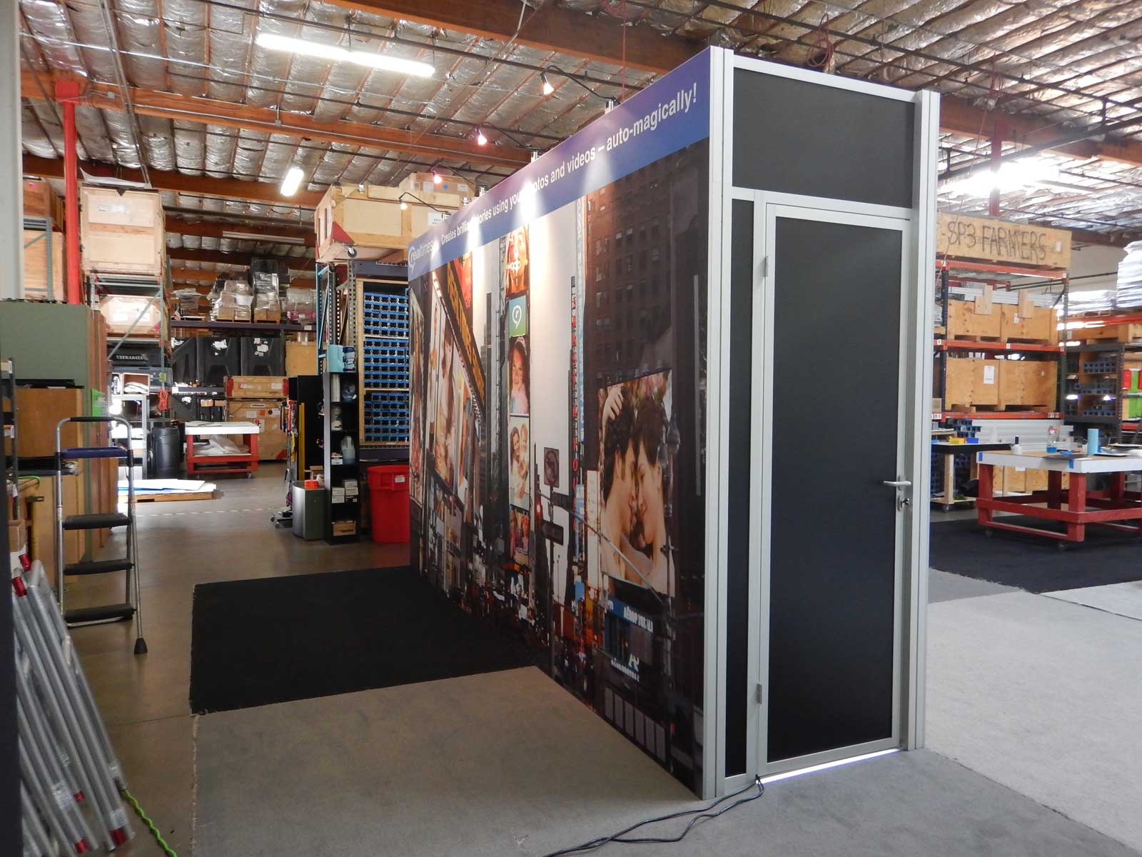 RENTAL: Storage Room (186" W x 39" D x 116" H) with SEG Tension Fabric Graphics, Locking Door, Large Monitor Mounts, and Halogen Arm Lights -- Image 1 RENTAL: Storage Room (186" W x 39" D x 116" H) with SEG Tension Fabric Graphics, Locking Door, Large Monitor Mounts, and Halogen Arm Lights -- Image 2 RENTAL: Storage Room (186" W x 39" D x 116" H) with SEG Tension Fabric Graphics, Locking Door, Large Monitor Mounts, and Halogen Arm Lights -- Image 3