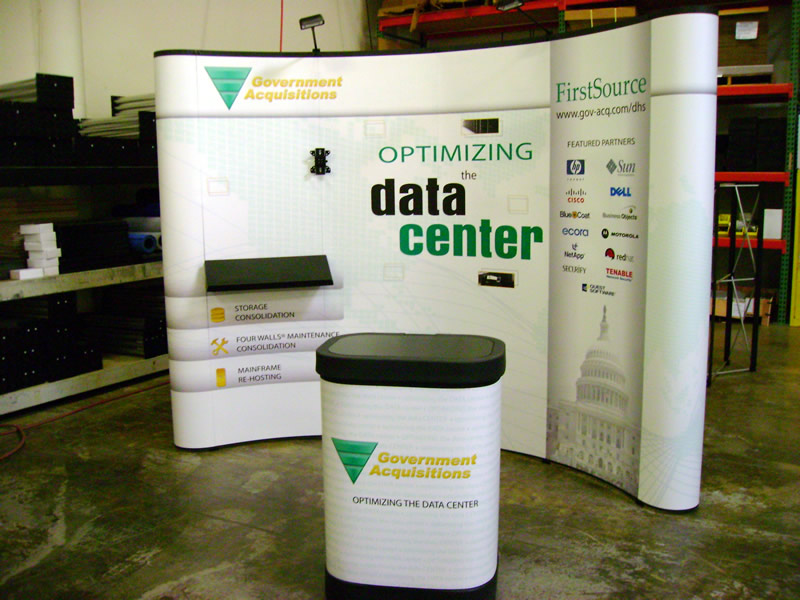 10' Quadro S Pop Up Curve with Universal Monitor Mount and Full Graphics Retail Structures (built with MODUL extrusion)