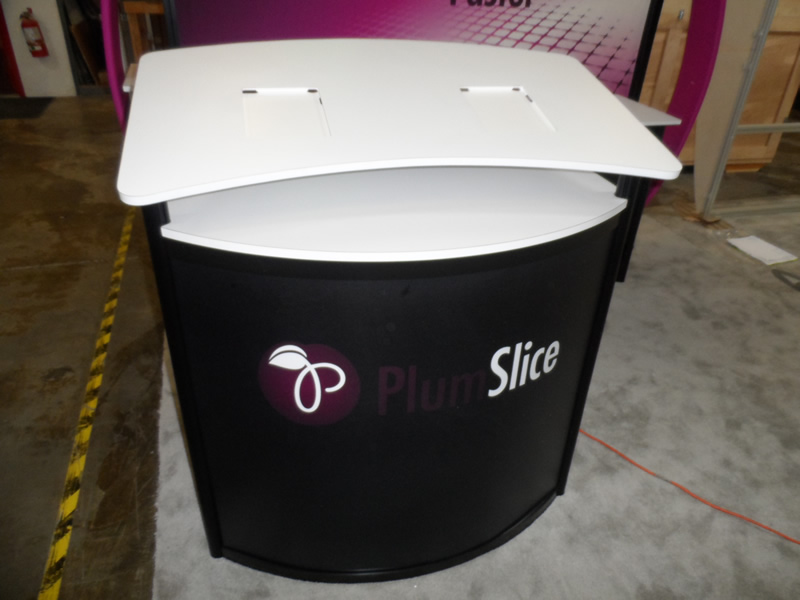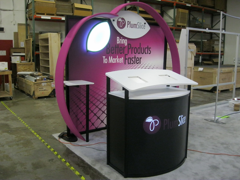 Custom eSmart 10x10 with Powder-coated Metal, Unique Aero Frames, LED Header, and Reception Counter with Recessed iPad Mounts -- Image 1 Custom eSmart 10x10 with Powder-coated Metal, Unique Aero Frames, LED Header, and Reception Counter with Recessed iPad Mounts -- Image 2 Custom eSmart 10x10 with Powder-coated Metal, Unique Aero Frames, LED Header, and Reception Counter with Recessed iPad Mounts -- Image 3 Custom eSmart 10x10 with Powder-coated Metal, Unique Aero Frames, LED Header, and Reception Counter with Recessed iPad Mounts -- Image 4