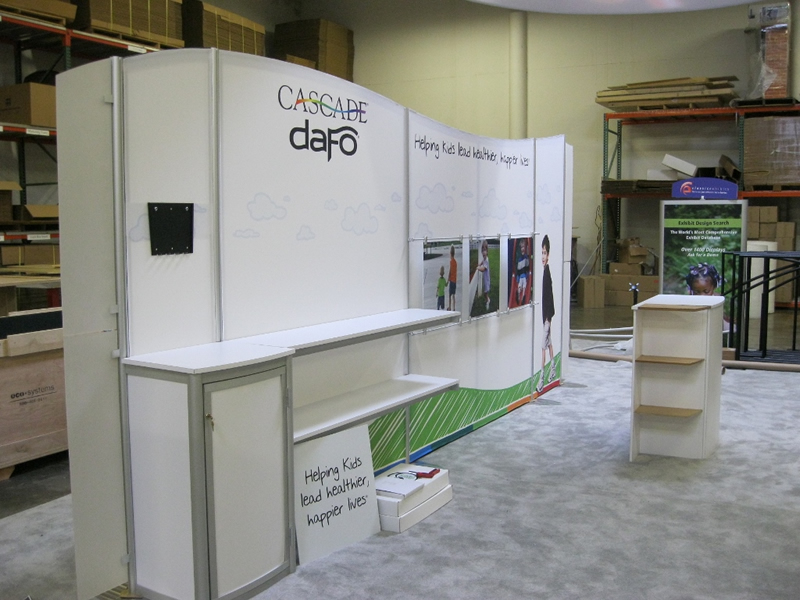 Custom eSmart 10x20 with Curved Metal, Fabric Graphics, Shelving, Storage, Monitor Mount, and Custom Wire Graphics -- Image 1 Custom eSmart 10x20 with Curved Metal, Fabric Graphics, Shelving, Storage, Monitor Mount, and Custom Wire Graphics -- Image 2 Custom eSmart 10x20 with Curved Metal, Fabric Graphics, Shelving, Storage, Monitor Mount, and Custom Wire Graphics -- Image 3