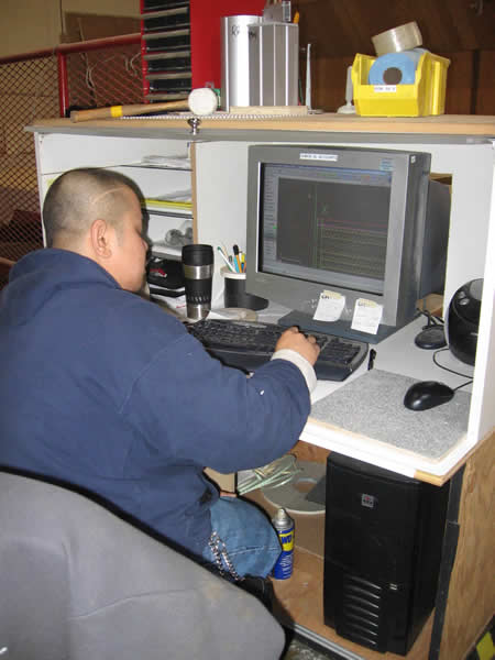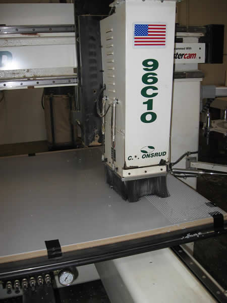 Overhead CNC Operator (Mike) and CNC Mill Creating a Perforated Sintra Panel