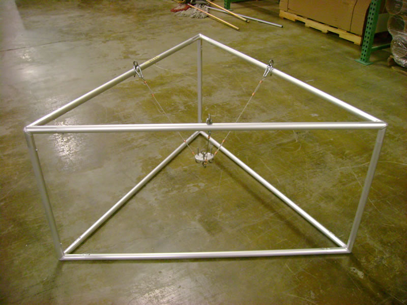 Aero Freestanding Table Top -- TF-410 Aero Overhead Tension Fabric Hanging Sign -- 3D Triangle