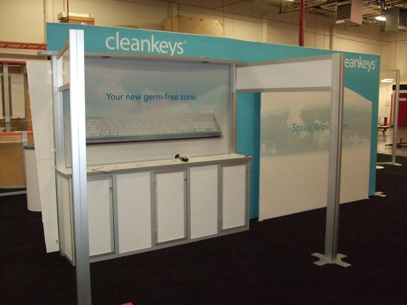 Custom Visionary Designs 10' x 20' Hybrid Exhibit with Tension Fabric Graphics and Adjustable Hinged Headers -- Image 1 Custom Visionary Designs 10' x 20' Hybrid Exhibit with Tension Fabric Graphics and Adjustable Hinged Headers -- Image 2