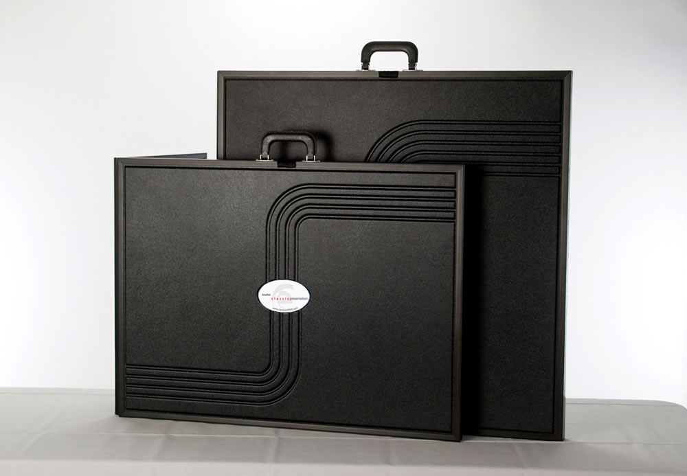Classic Presentation Table Top Displays are North America’s leading line of affordable briefcase displays. This remarkable series comes in five portable sizes, offers plenty of display real estate, yet easily folds into a slim portfolio-style, self-enclosed case with a built in handle. Even graphics fit in the recessed frame so there’s no need to remove them.